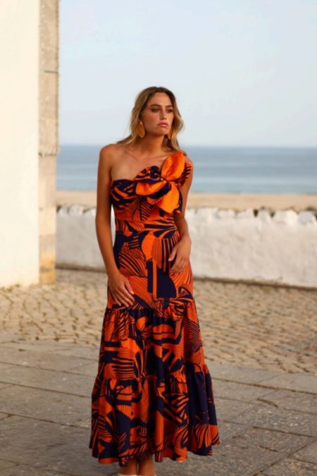 VESTIDO DE FIESTA MIDI ASIMETRICO ELIE