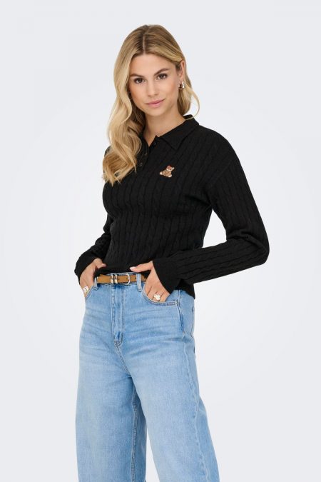 Jersey cuello de polo con osito bordado Only Katia