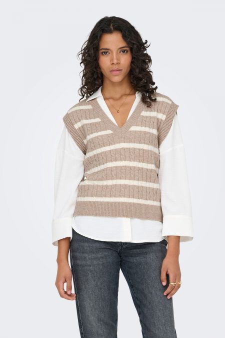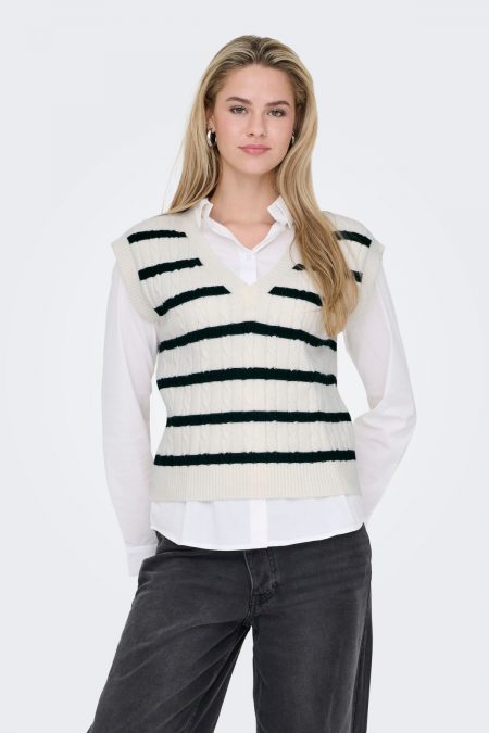 Chaleco de punto a rayas con cuello pico Only Katia