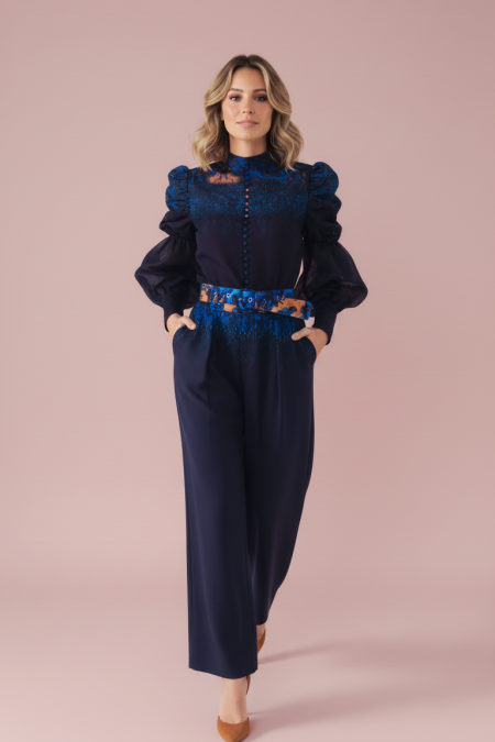 Conjunto de Blusón y Pantalón Seona con Plumas