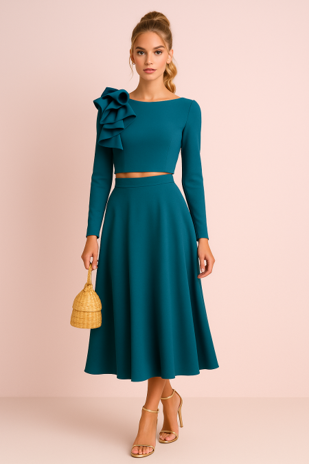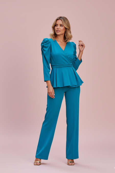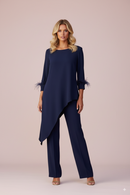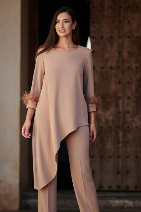 Conjunto de Blusón y Pantalón Seona con Plumas