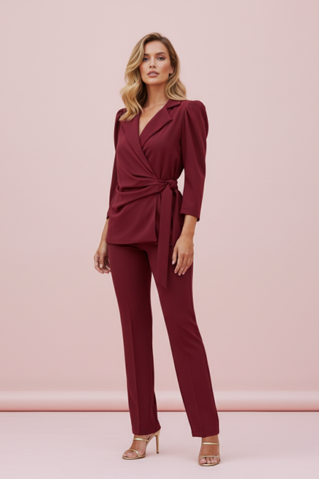Conjunto de Chaqueta y Pantalón Cinturón Fleco