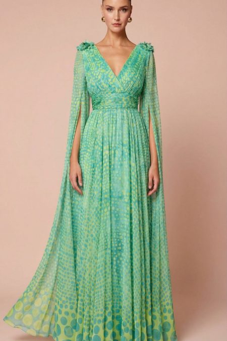 VESTIDO LARGO DE GASA MANGA CAPA