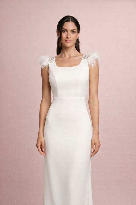 Vestido de Novia con Plumas y Aplicaciones de Pedrería