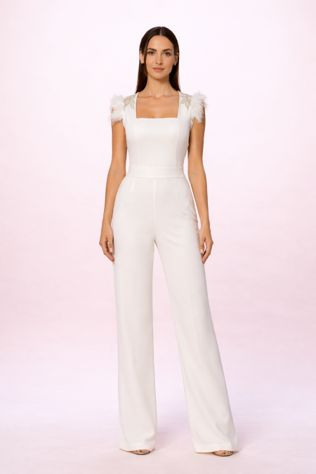 Mono de Novia con Plumas y Aplicaciones