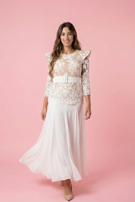 Conjunto de Cuerpo de Tul Bordado y Falda