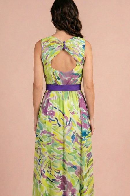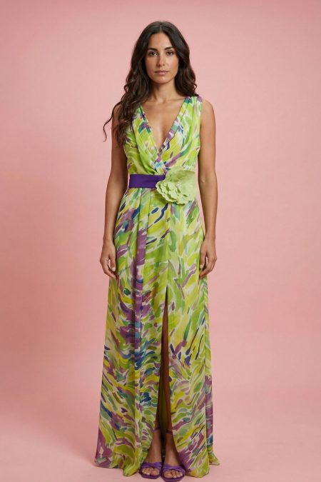 VESTIDO DE FIESTA MIDI DE RASO Y ESCOTE PROFUNDO