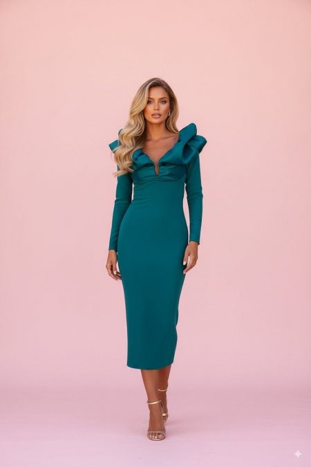 VESTIDO DE FIESTA MIDI CREPE SATINADO