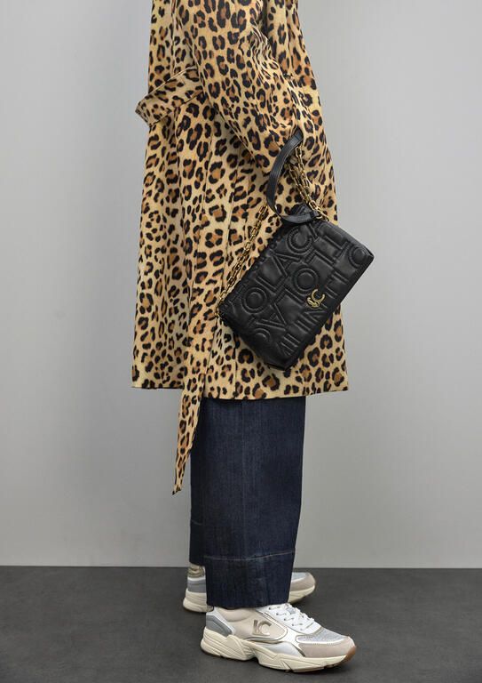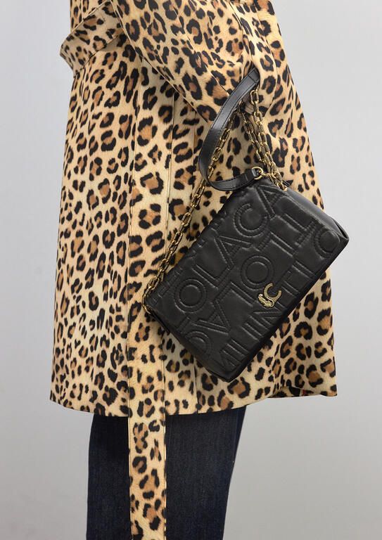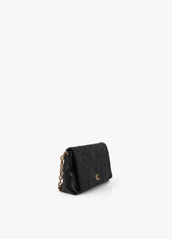 Bandolera elegante con solapa texturizada y pespunte de logo. Diseño compacto con cadena dorada ajustable y cierre magnético seguro. Ideal para un look sofisticado.