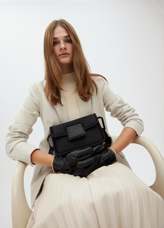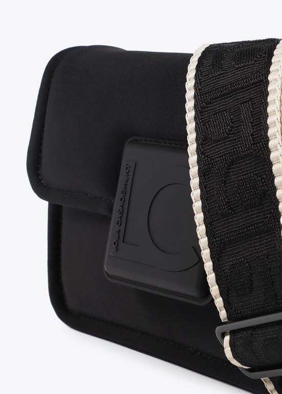 Bandolera confeccionada en tejido tipo neopreno con logo de silicona al tono. Diseño moderno y versátil con correa ajustable para mayor comodidad. Perfecta para complementar tus looks diarios y mantener tus esenciales siempre a mano. Compacta y estilosa, ideal para cualquier ocasión.