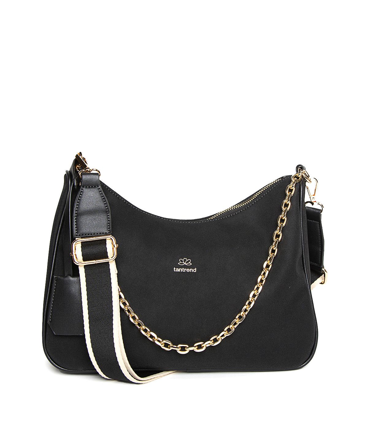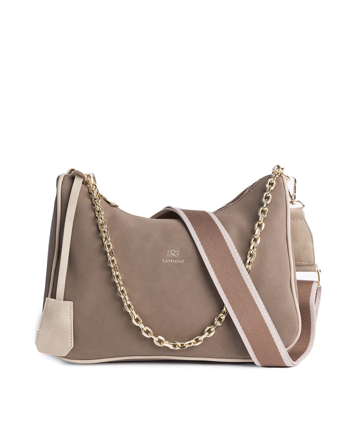 Bolso tipo croissant con asa de cadena corta dorada y asa de algodón bitono de quita y pon con bolsillo de cremallera en parte trasera. Medidas: 30 x 20 x 11 cm.. Composición: Ext: 100º/ₒ PU. Int: 100º/ₒ poliéster.