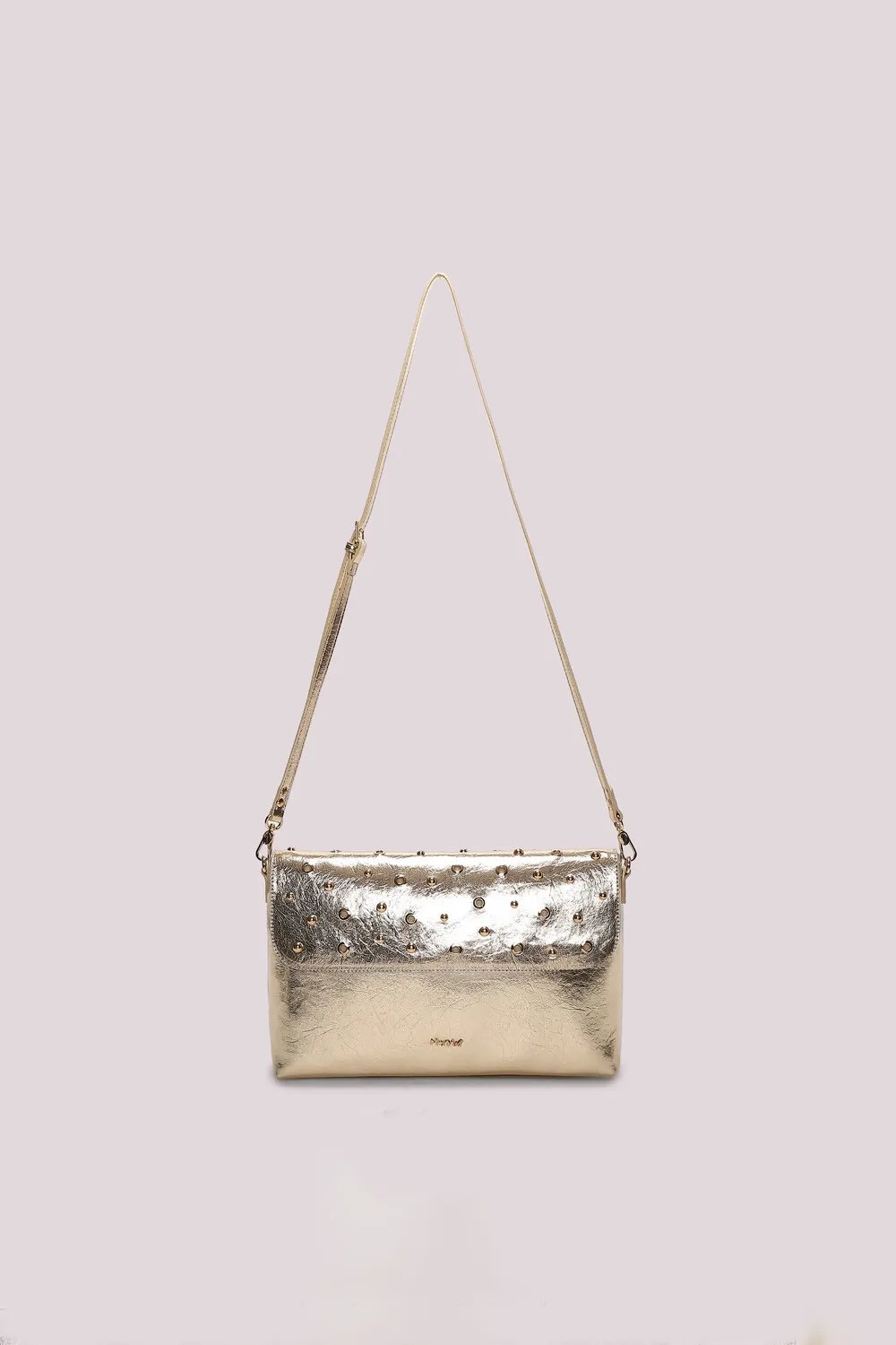 Bolso tipo sobre con tachuelas y ojales