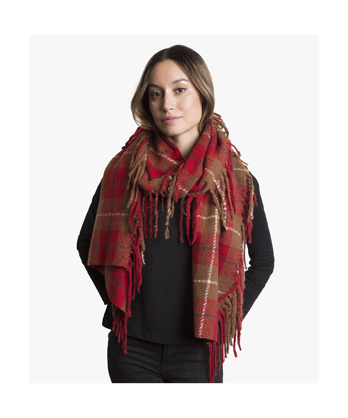 Bufanda abrigada en tacto extra suave, de cuadros tartán, con flecos en los laterales largos de la bufanda. Medidas: 45 x 180 cm flecos. Composición: 100% poliéster. Peso: 260 gr.