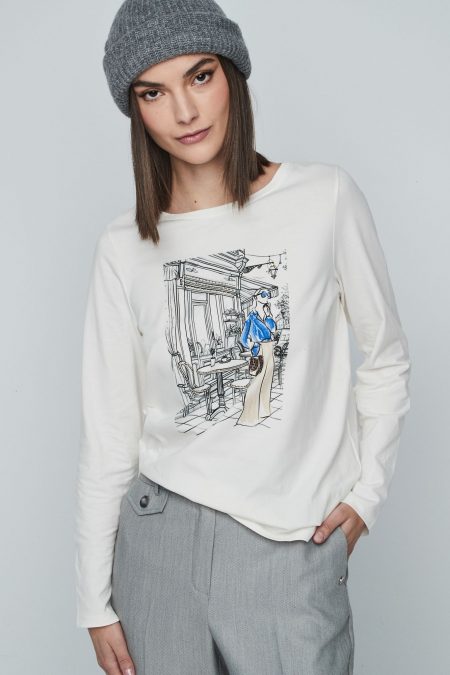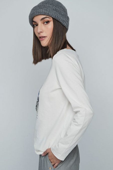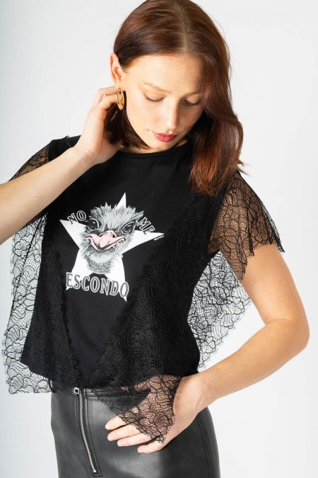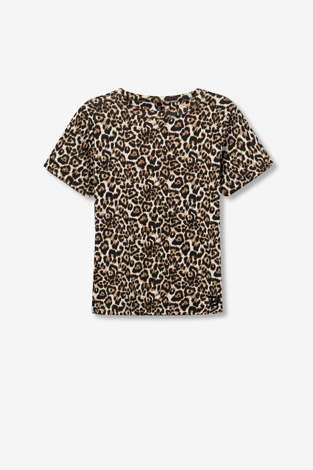 Camiseta slim fit de algodón con estampado animal, cuello redondo y manga corta.