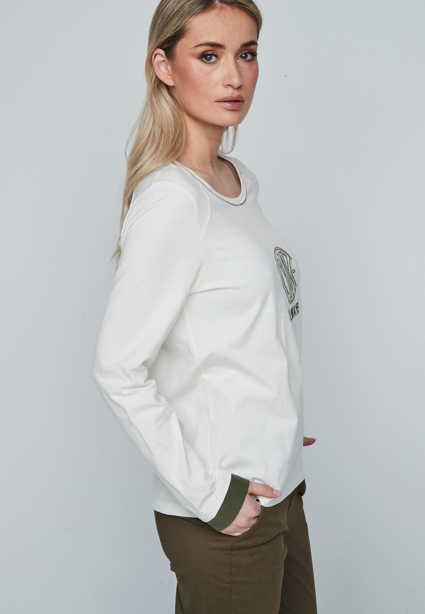 Sudadera de mujer de cuello redondo detalle delantero con manga larga