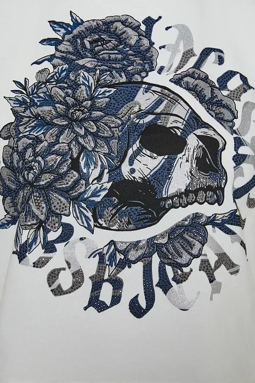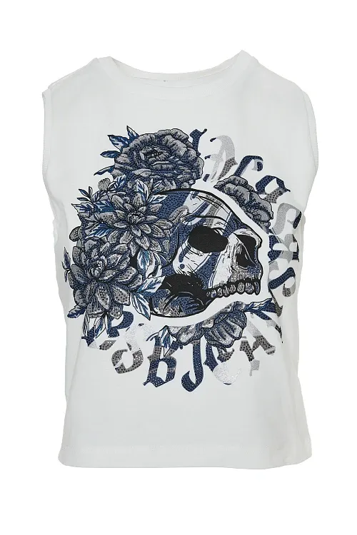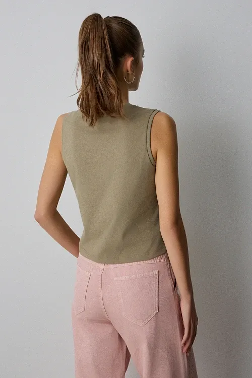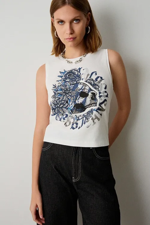 Top sin mangas y estampado, con escote redondo, diseño recto, algodón.