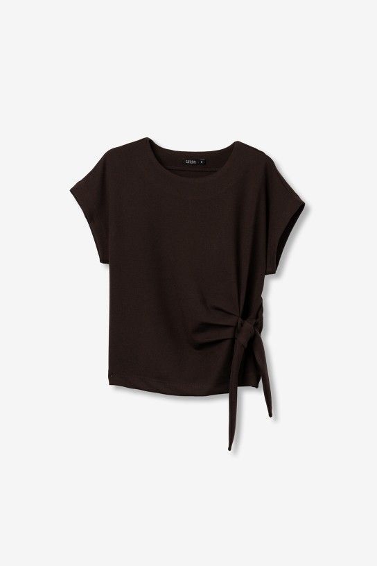 Camiseta de manga corta en tono chocolate, diseño relaxed con lazo lateral ajustable.