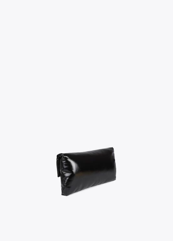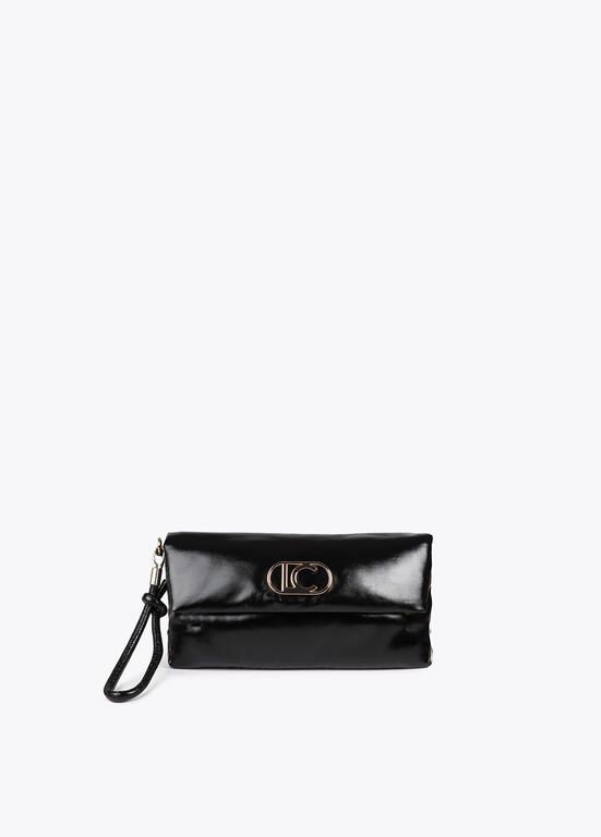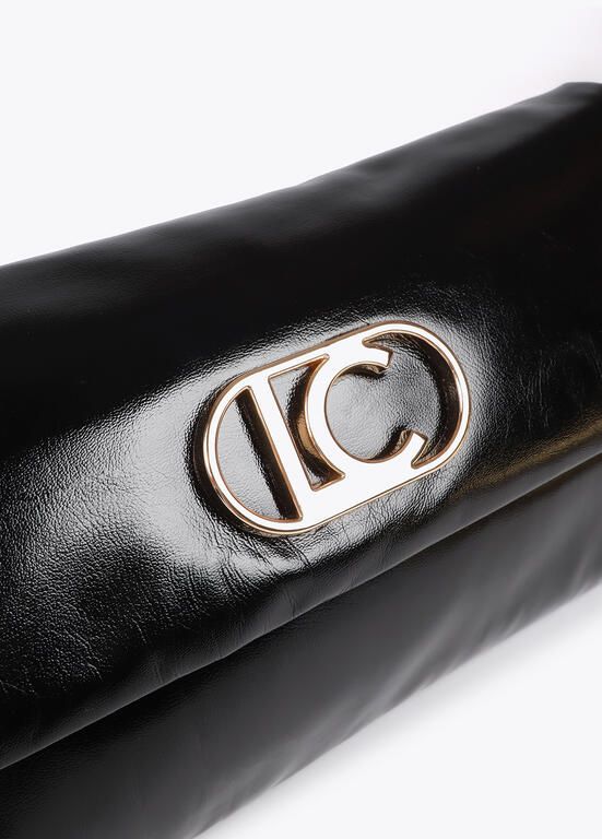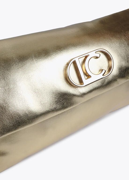 Elegante cartera de mano acolchada en efecto piel metalizada. Presenta un sofisticado logo LC ovalado. Cierre magnético y correa de muñeca extraíble para mayor comodidad. Interior forrado con bolsillo de cremallera.