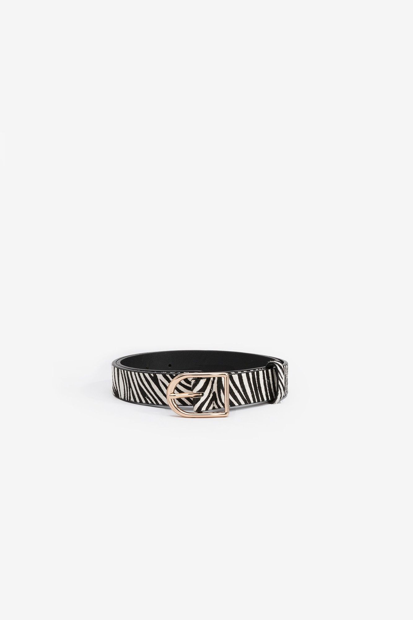 Cinturón con estampado animal efecto cebra con hebilla metálica.