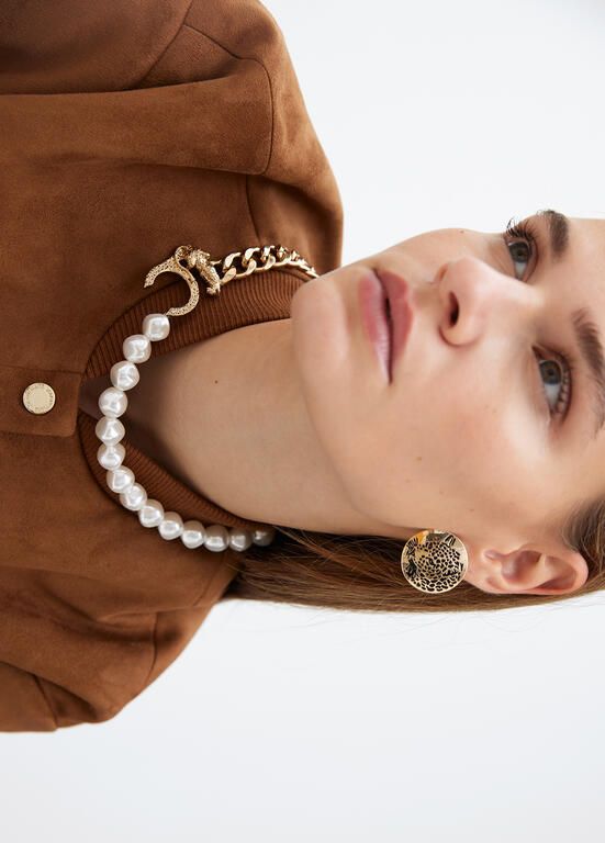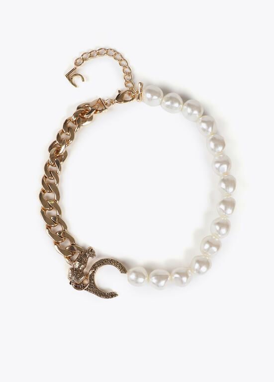 Collar corto de diseño exclusivo con logo de leopardo. Combina una elegante cadena dorada y perlas clásicas. Cierre ajustable para un ajuste perfecto.