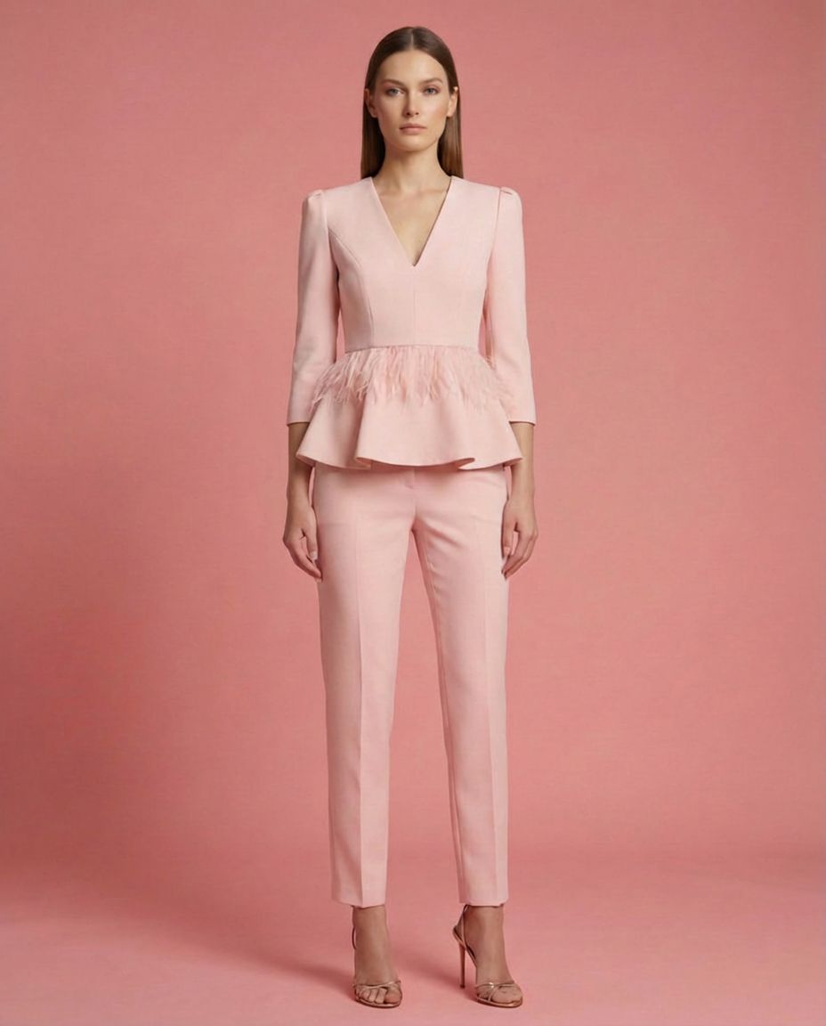 CONJUNTO DE PANTALON Y CASACA CON PLUMAS