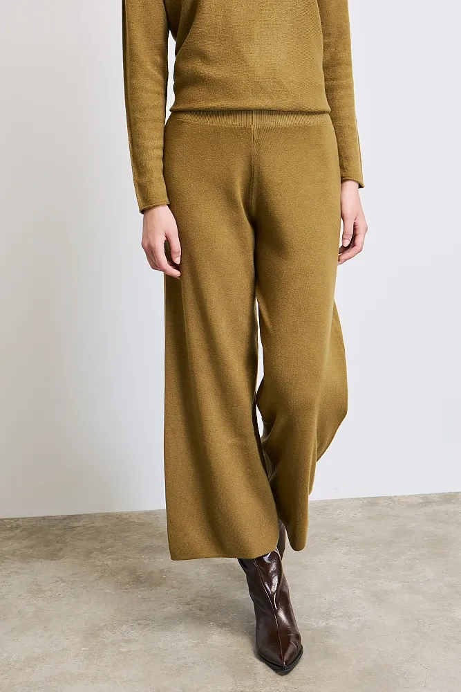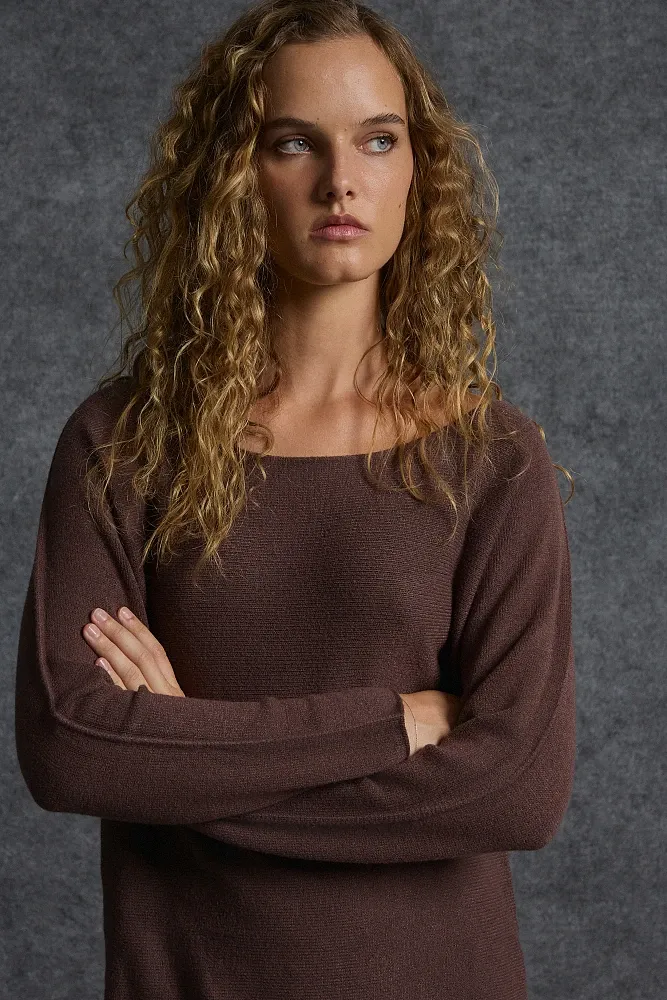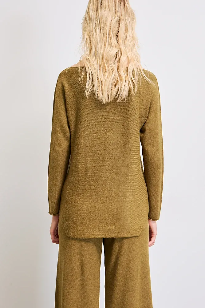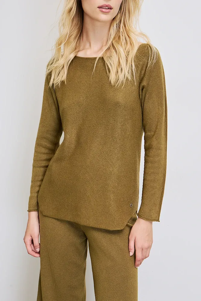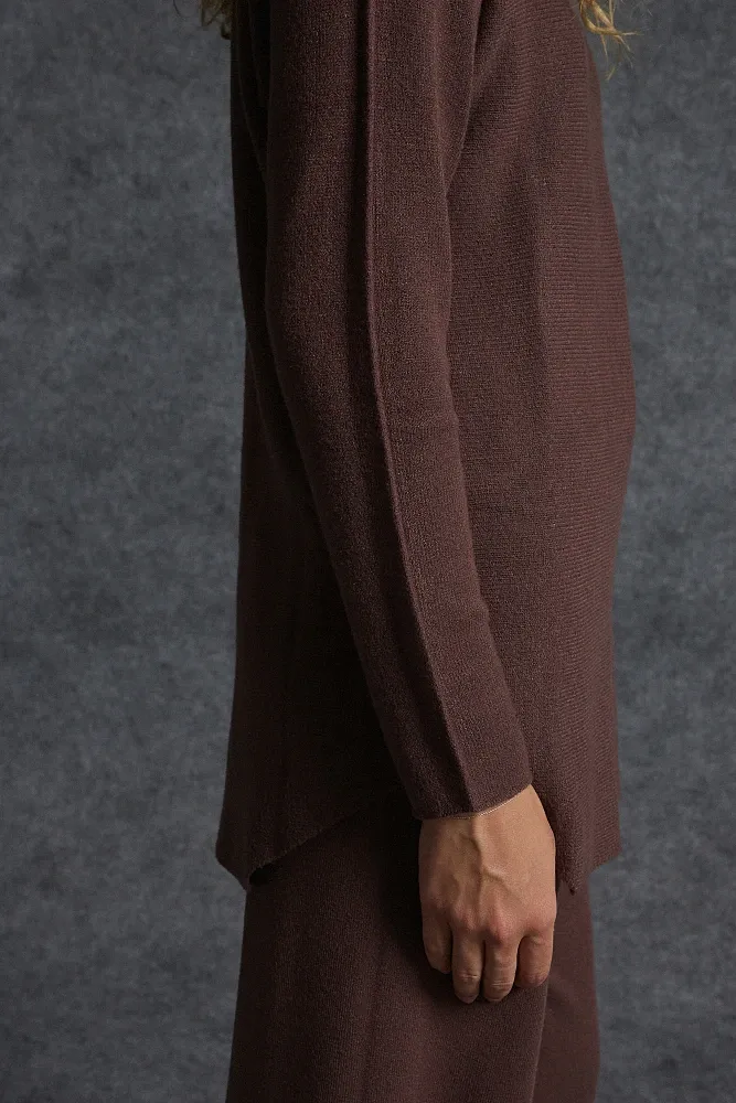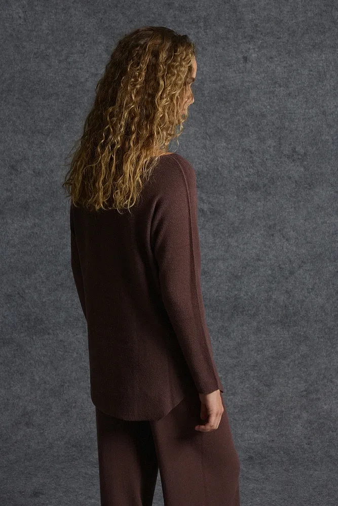 Conjunto de punto, pantalón con cintura elástica, blusa con mangas largas, escote redondo, diseño recto, suave al tacto