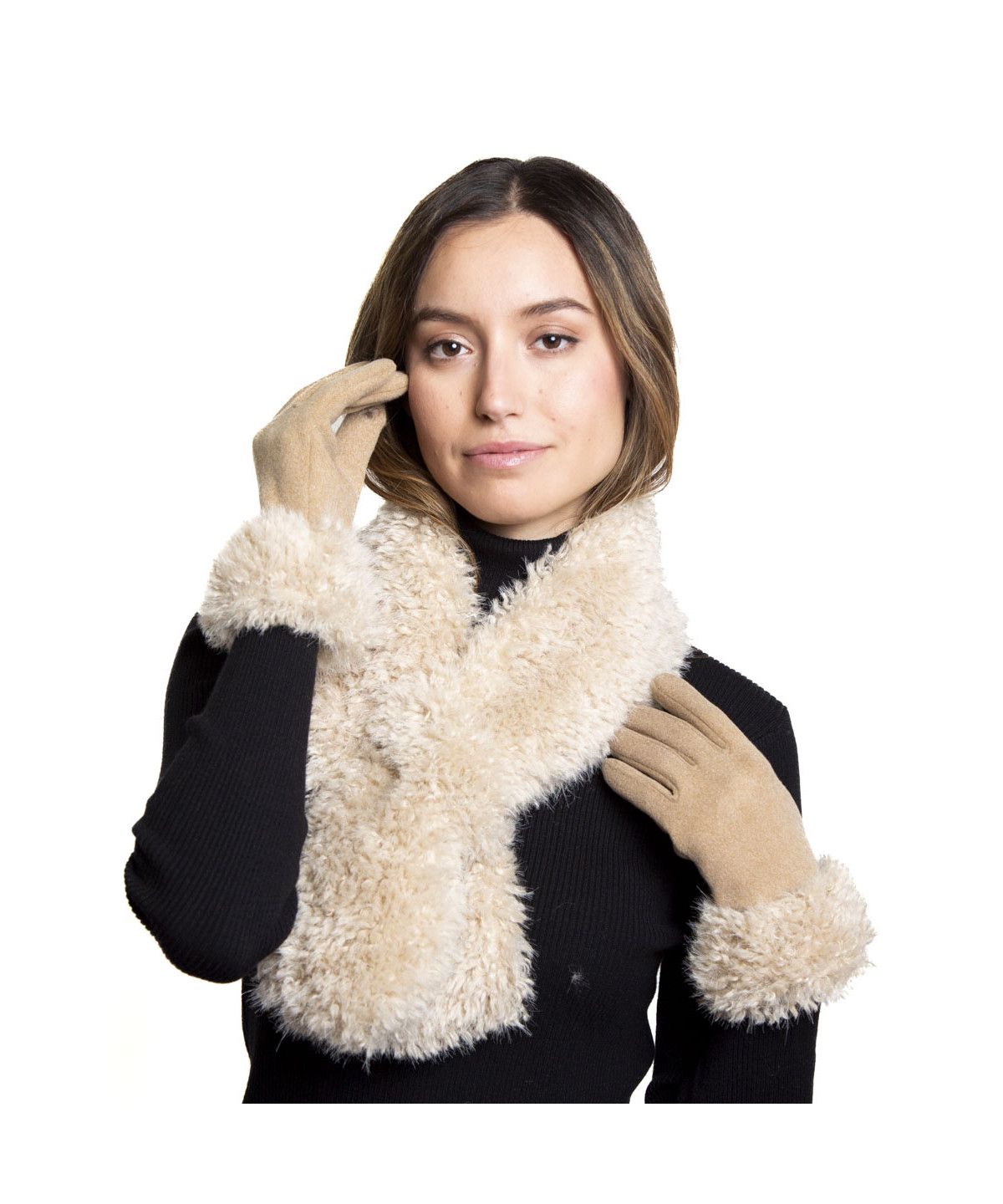 Bufanda de suave pelo sintético tipo borreguito. Con cierre de ojal. Medidas: 11 x 95 cm. Composición: 100º/ₒ poliéster. Peso: 125 gr.