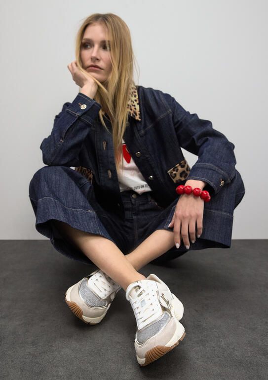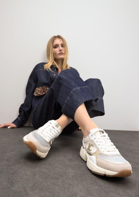 Deportiva con suela tipo running y detalles en piel