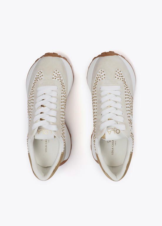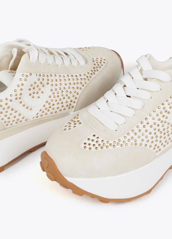 Deportiva moderna con plataforma y detalles de tachas metalizadas. Fabricada en material sintético con suela de goma antideslizante. Interior acolchado para mayor comodidad y cierre de cordones ajustables.