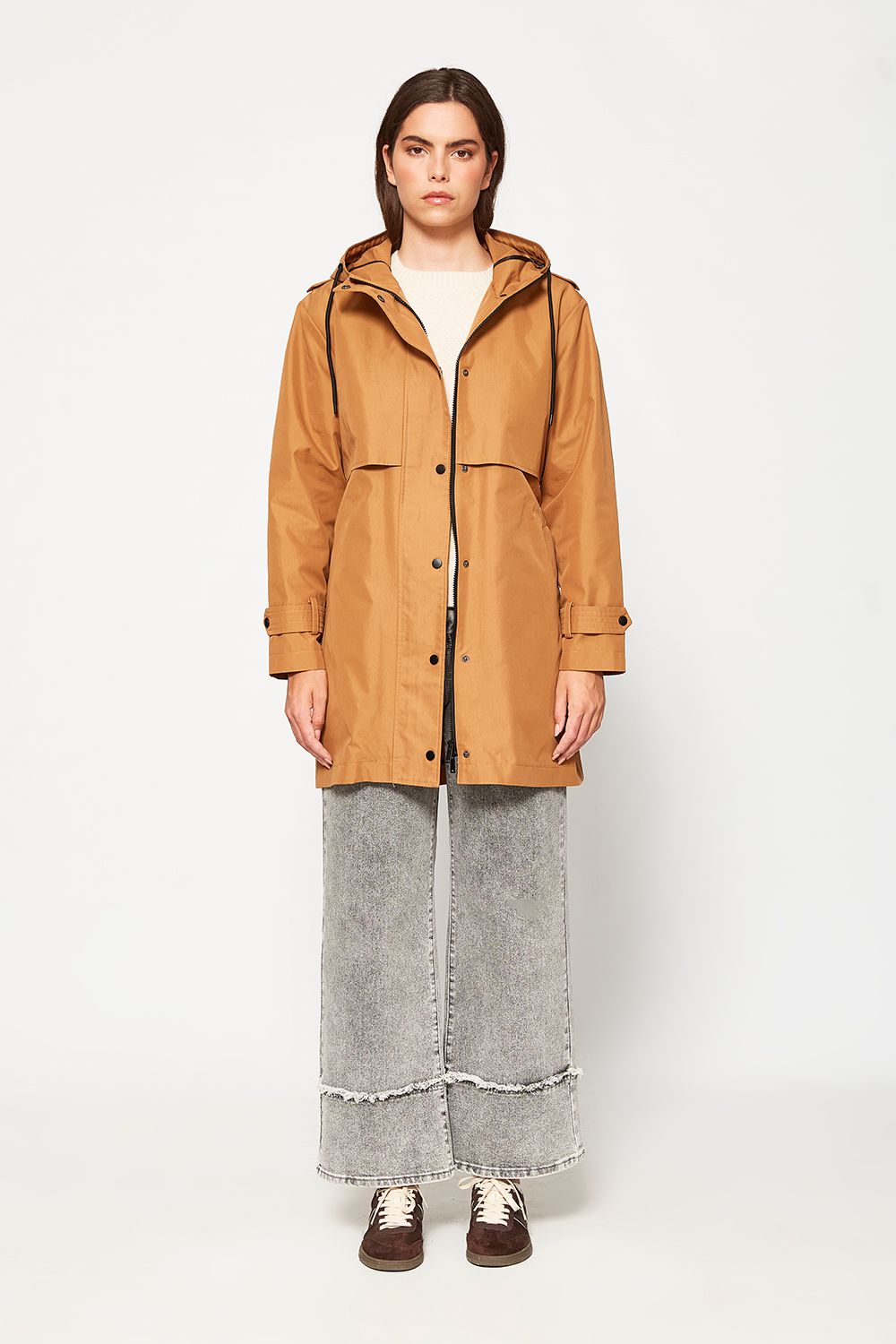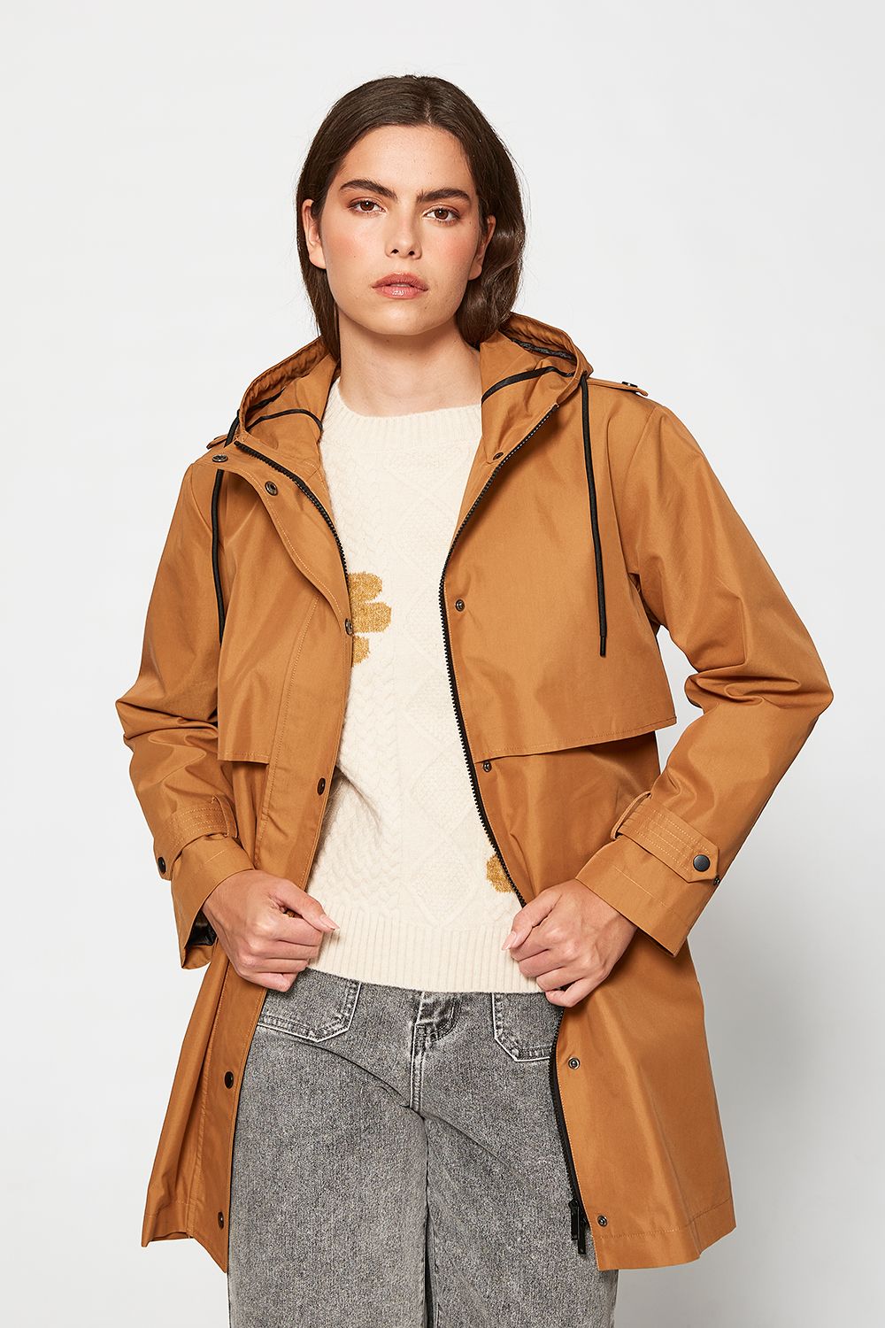 Ligera y versátil, esta gabardina en color camel es perfecta para el entretiempo. Con capucha, cinturón ajustable y botones de presión, combina funcionalidad y estilo urbano. Su diseño sin forro la convierte en una prenda cómoda y fácil de llevar en cualquier ocasión.