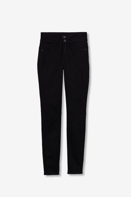Jeans ajustados de tiro alto con tres bolsillos.