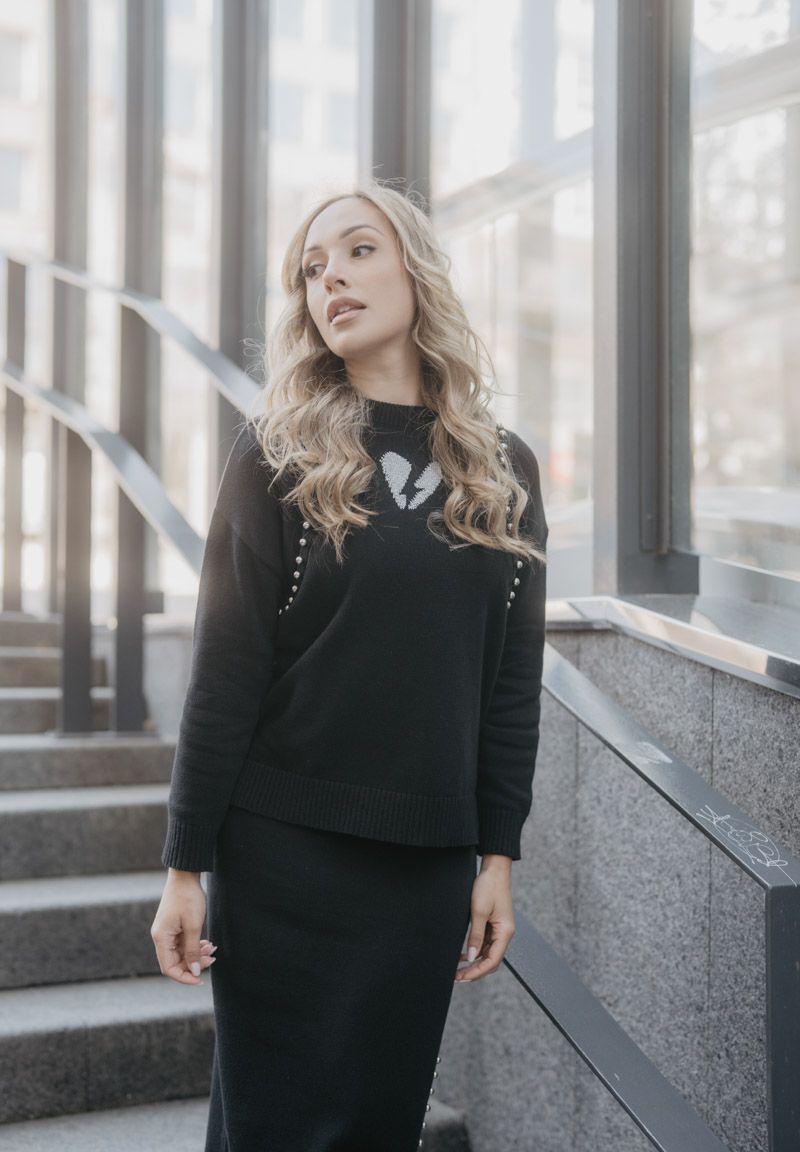Jersey de punto con detalle de tachuelas y aberturas en los laterales. Funciona a la perfección con tu mejor prenda inferior Animosa, pero lo hemos diseñado a conjunto con la falda de la misma línea. El corazón atravesado por el rayo simboliza la fuerza emocional. Diseñado y producido cuidando hasta el más mínimo detalle. Todas nuestras prendas llevan un marcapáginas con un texto inspirador.