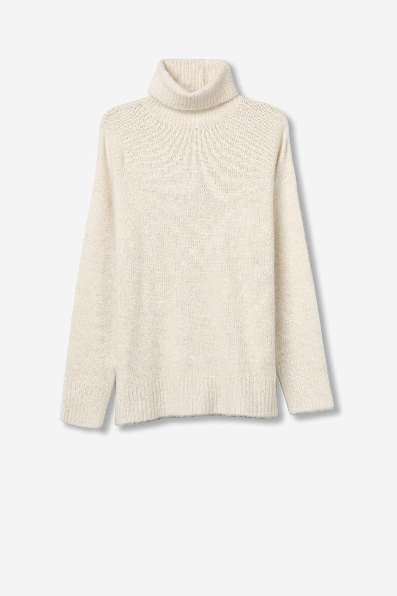 Jersey relaxed fit de punto con hilo metálico insertado, cuello alto, manga larga y acabados de canalé.