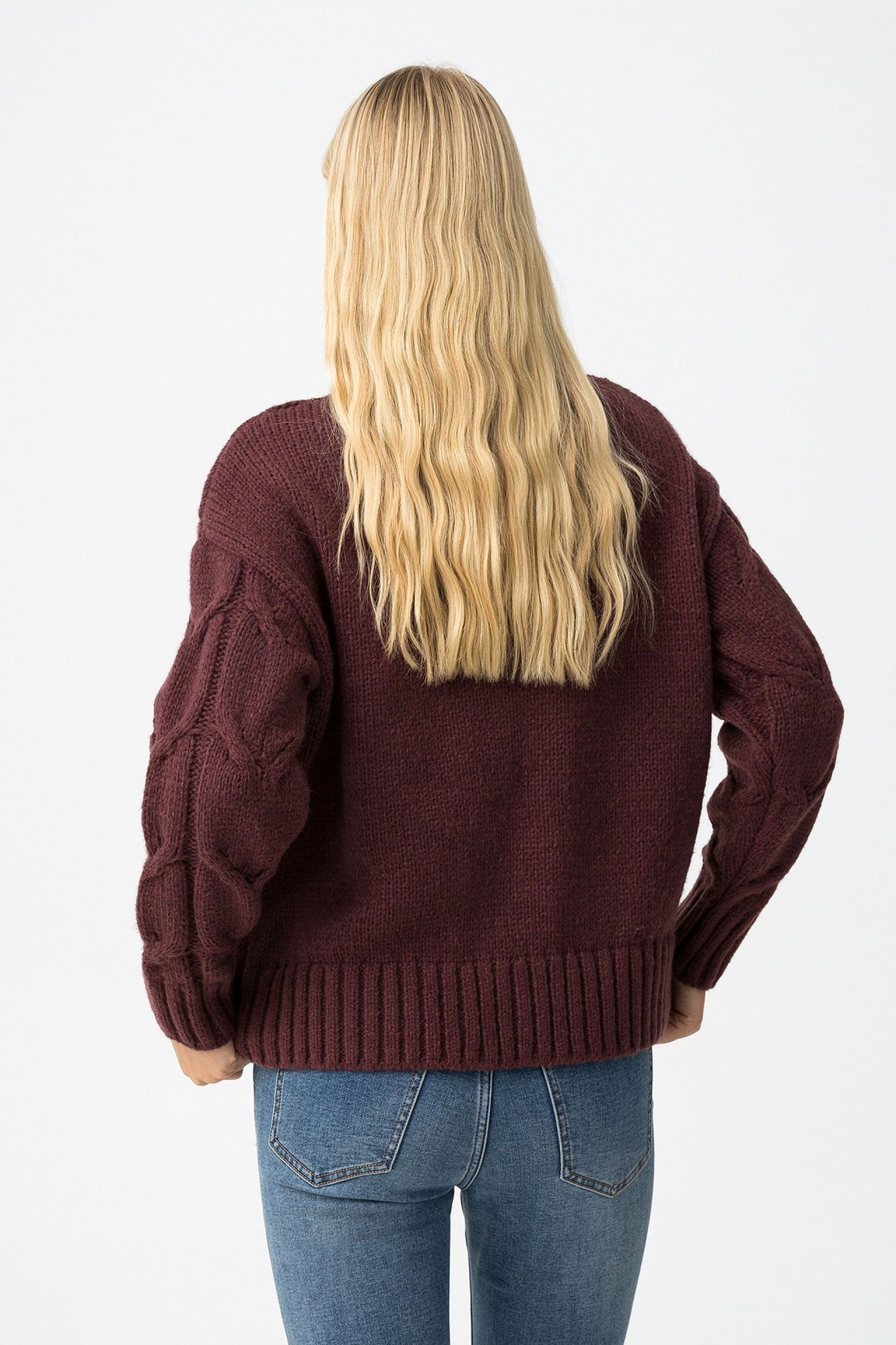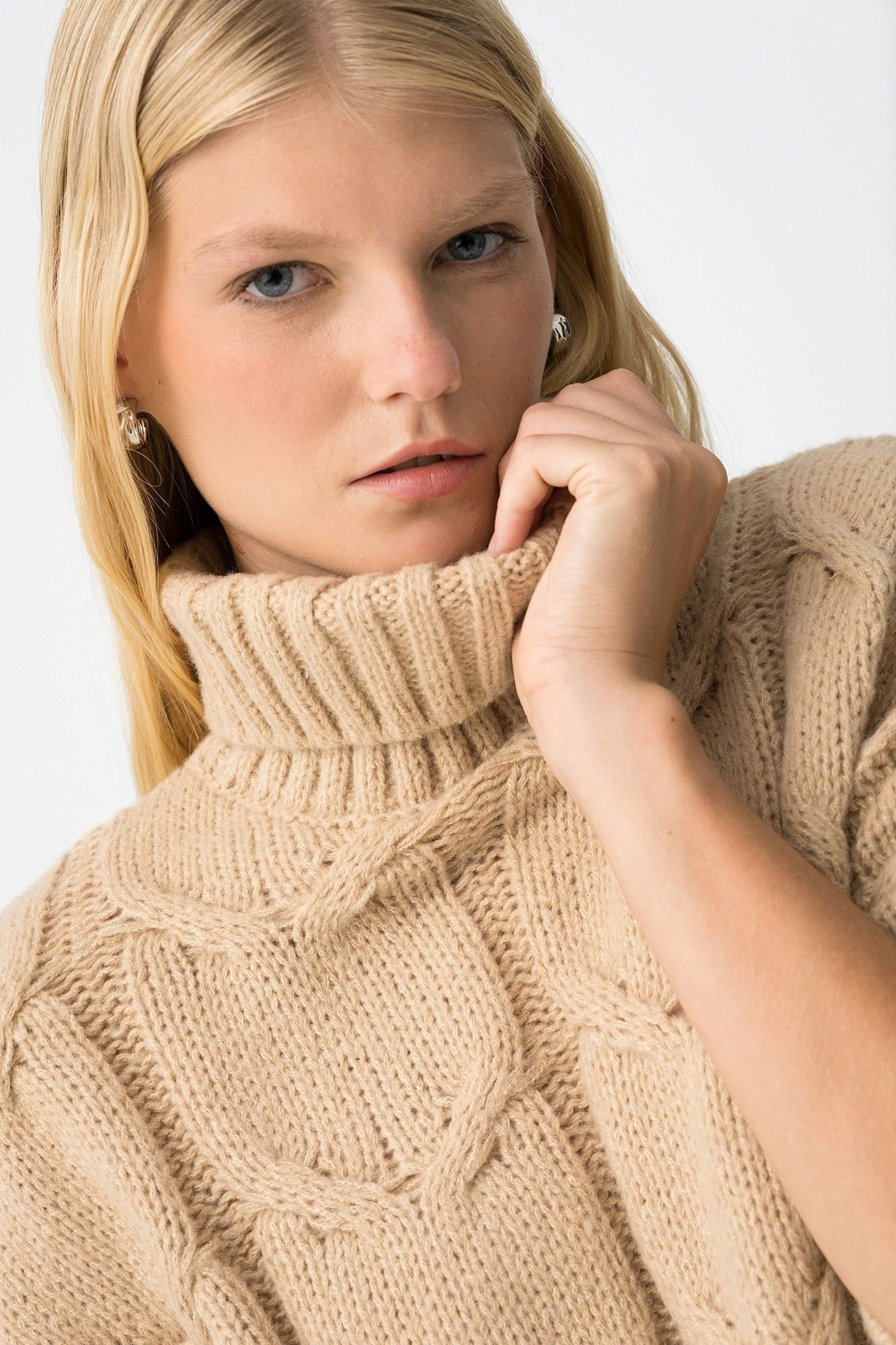 Jersey relaxed fit de punto cable knit, cuello alto y manga larga.