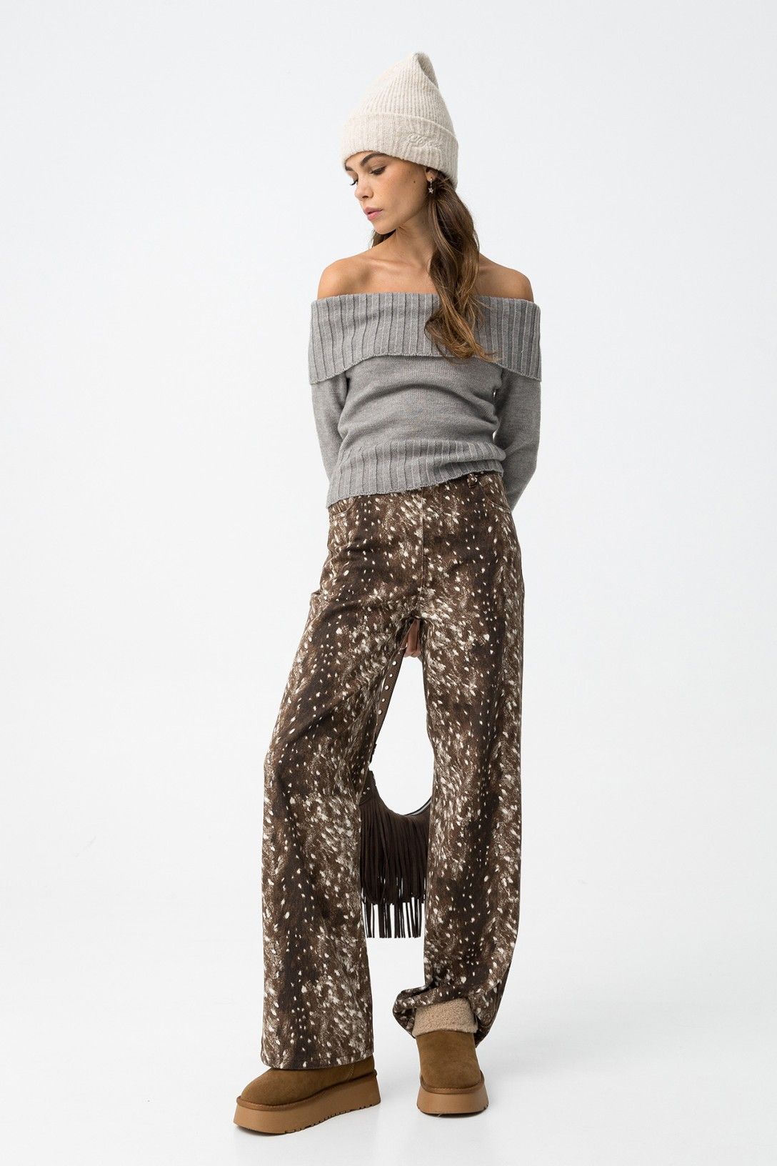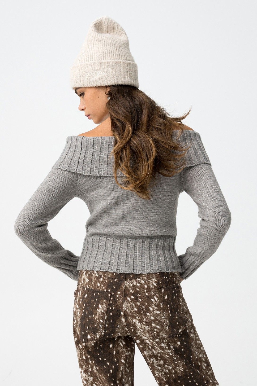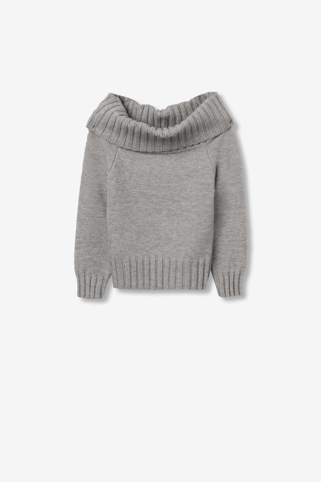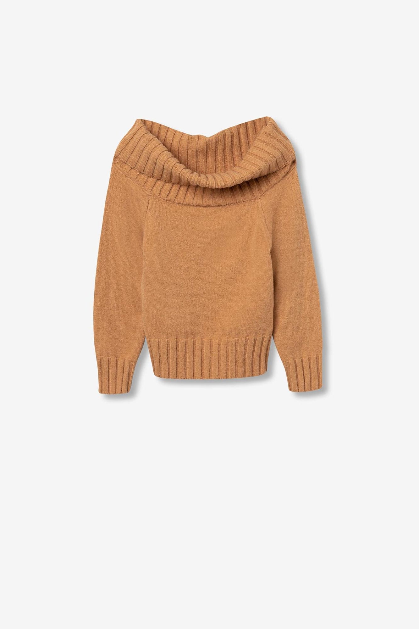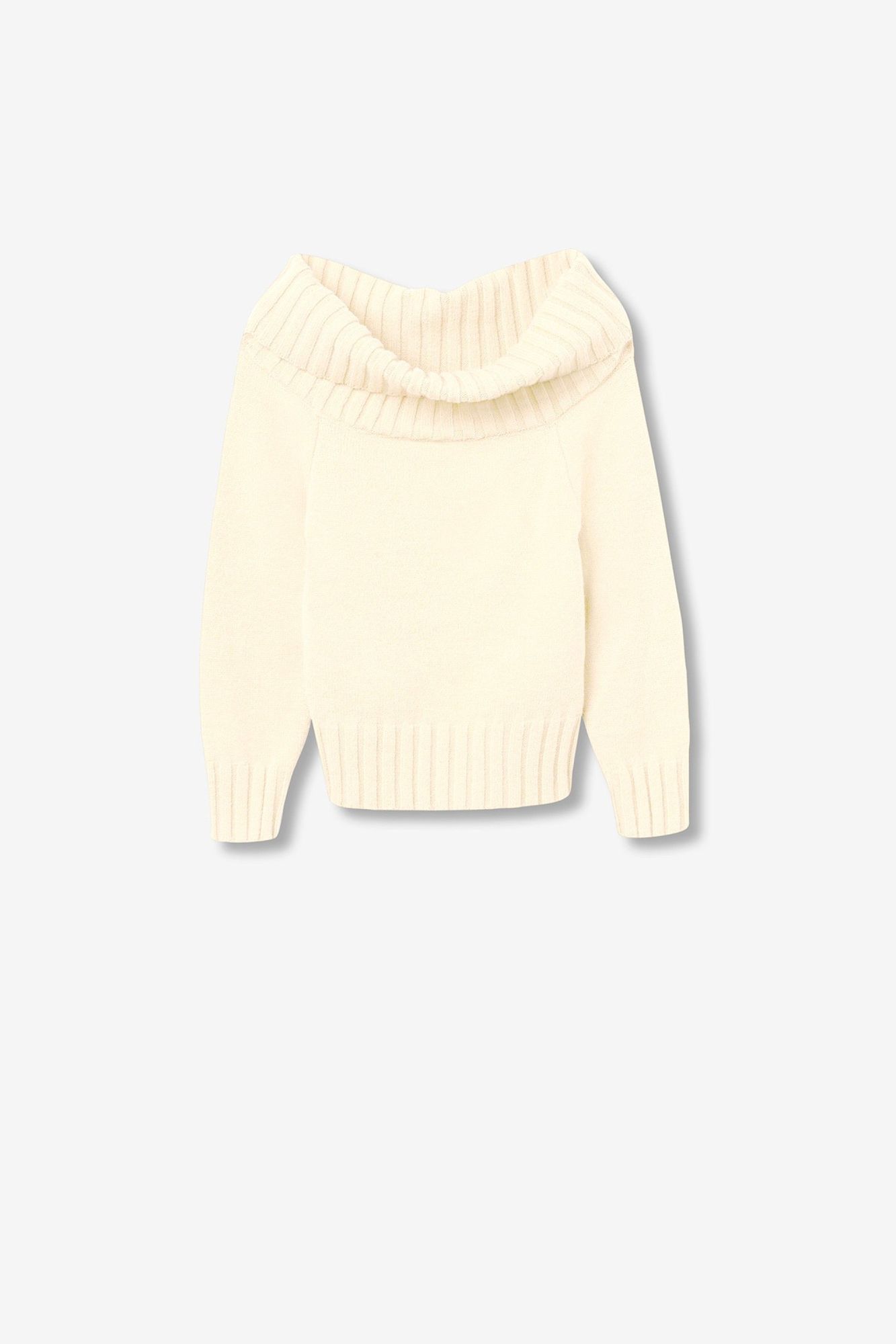 Jersey slim fit con escote barco, manga larga, bajo cropped y acabados en canalé.