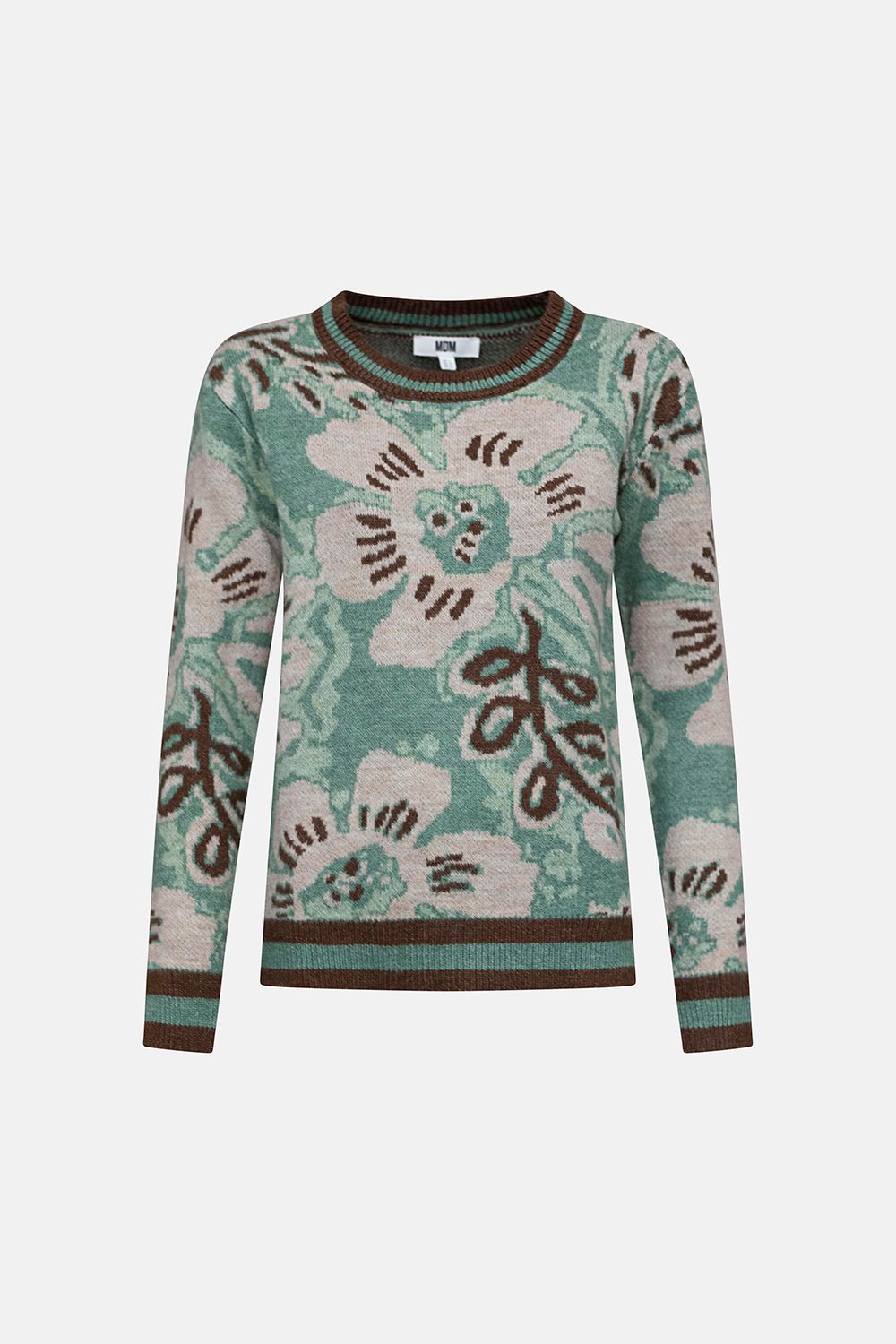 Un toque fresco y original para tus outfits de temporada. Este jersey de punto en verde con estampado floral en tonos beige y marrón combina comodidad y estilo en una prenda única. De corte recto y cuello redondo, es perfecto para combinar con pantalón marrón chocolate o jeans, creando un look urbano con aire sofisticado.