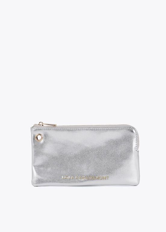 Monedero doble elegante en tonos metálicos, plata y dorado. Incluye práctico colgante LC. Confeccionado en material sintético de alta calidad, ideal para su uso diario con cierre de cremallera seguro.