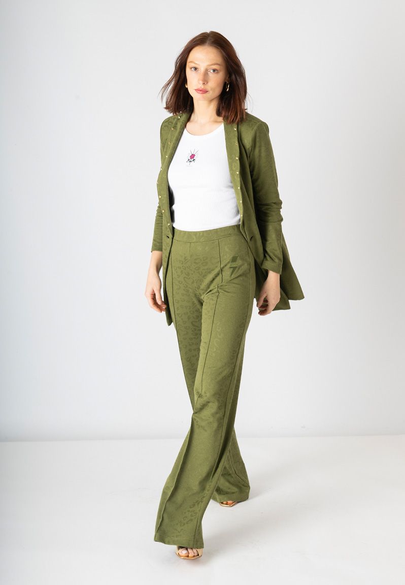 Pantalón recto de tiro alto, con costuras en la parte frontal, cintura de goma. Este estampado es ya nuestra seña de identidad: un animal print formado por corazones y rayos. Simboliza rapidez, agilidad, fuerza, resistencia, y determinación, y también independencia y sigilo. El tejido tipo Jacquard es espectacular, los hilos se entremezclan para dar vida y relieve al diseño. Nuestra gueparda, más viva que nunca. Con el logo de Animosa en un rayo bordado en un lateral. Llévalo con la chaqueta que hemos diseñado a conjunto, para salir a comerte el mundo. Diseño propio Animosa y fabricación en Portugal, cuidando hasta el más mínimo detalle. Todas nuestras prendas incluyen una etiqueta con un texto inspirador que puedes usar como marcapáginas. La modelo lleva una talla S, y sus medidas son: altura 170, pecho 88, cintura 68 y cadera 96 cm.