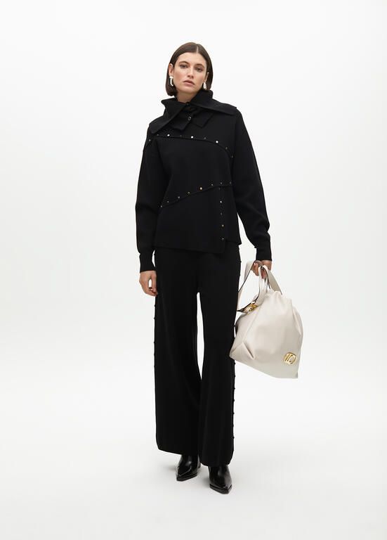 Pantalón recto punto tachas laterales