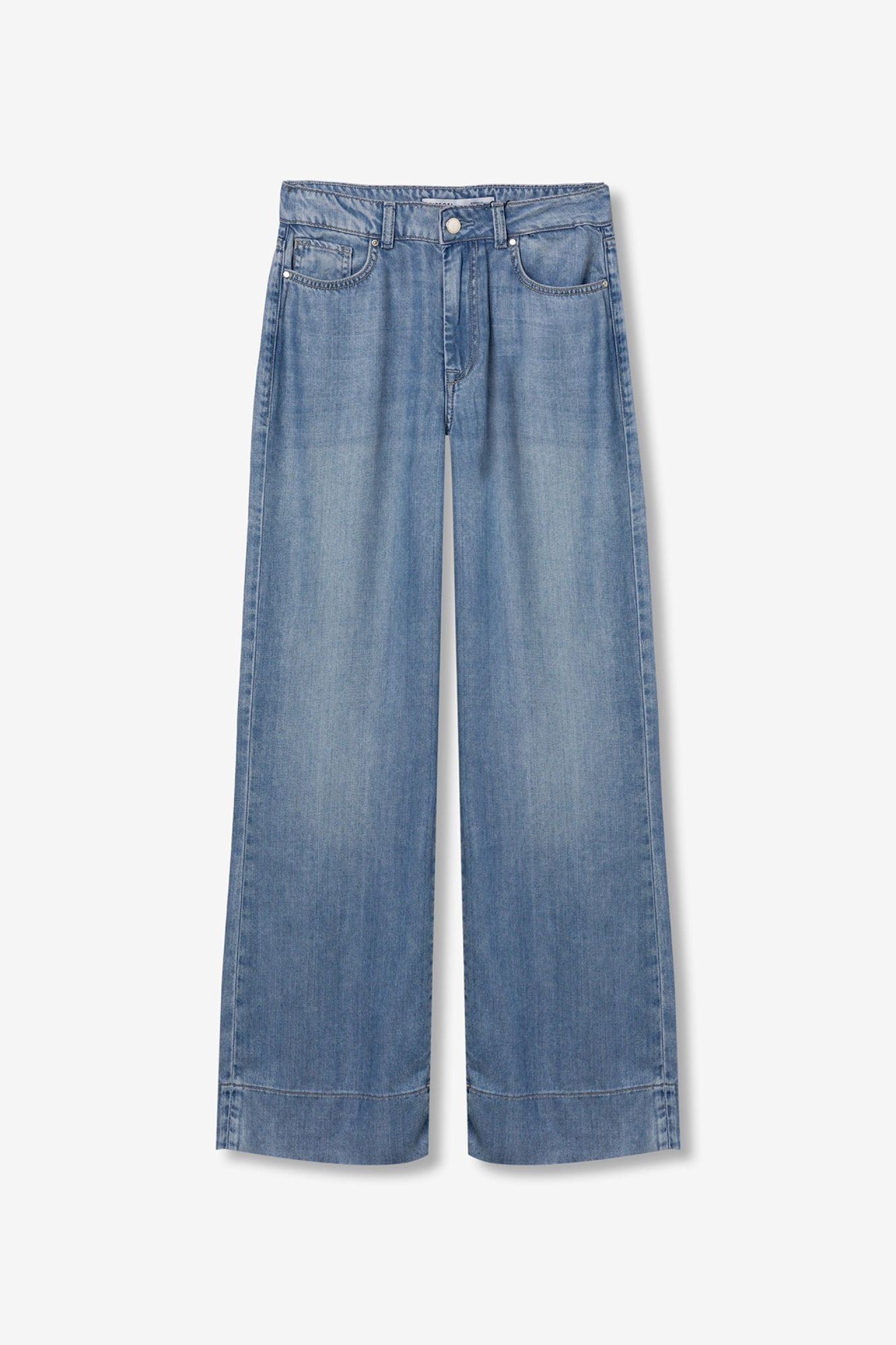 Vaqueros de corte ancho y largo completo en azul denim claro, con cintura elástica y cordón.