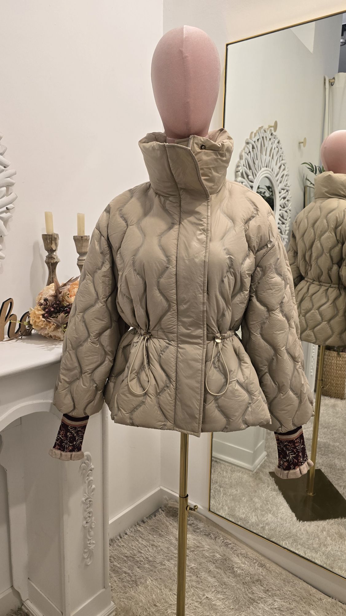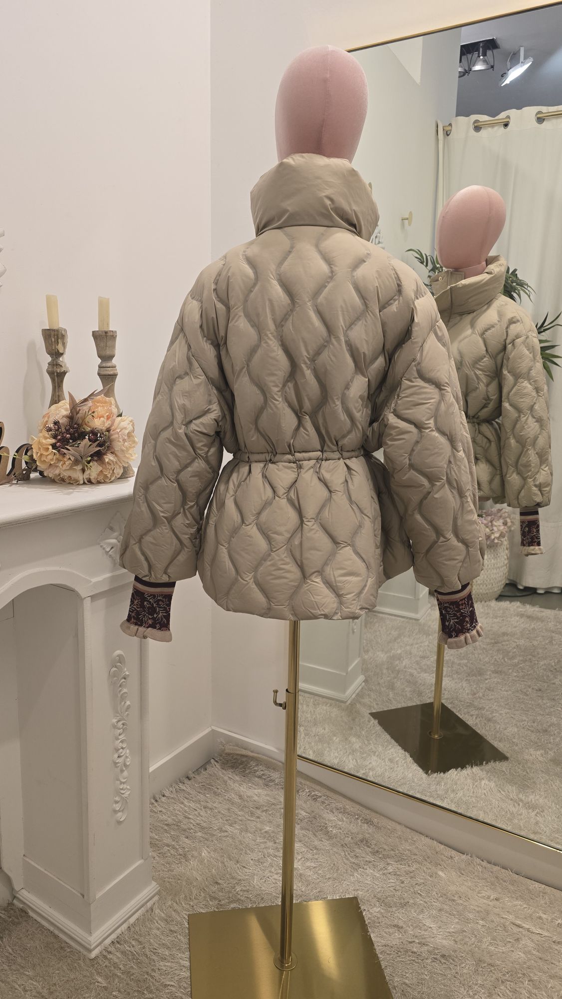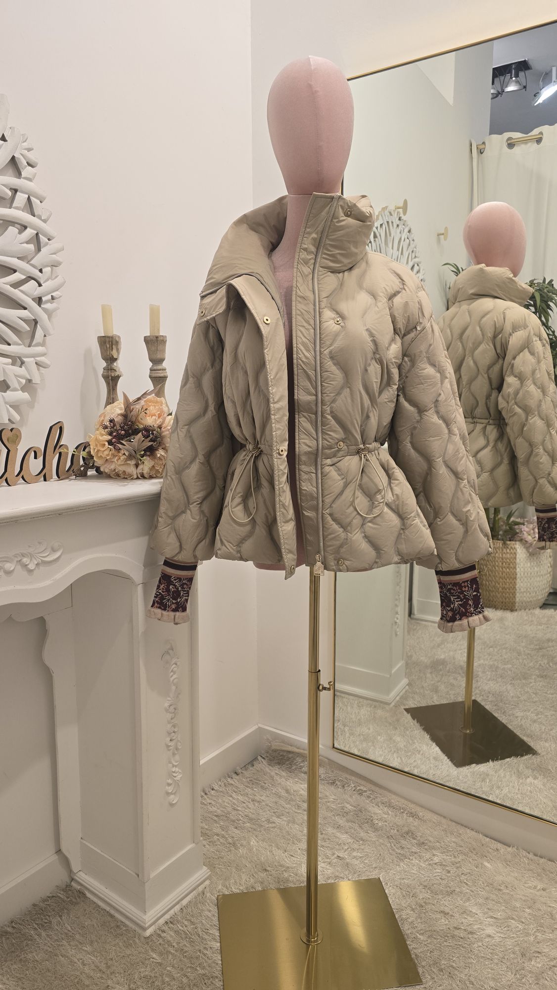 Parka Beige con Puño de Punto
