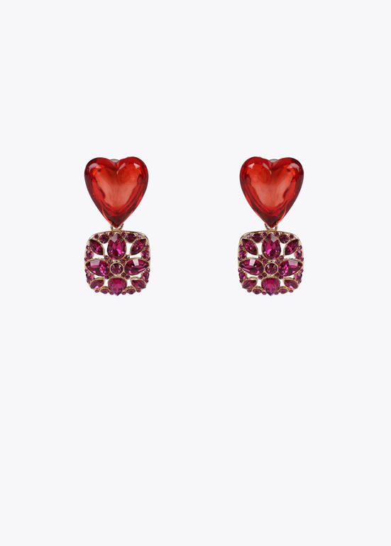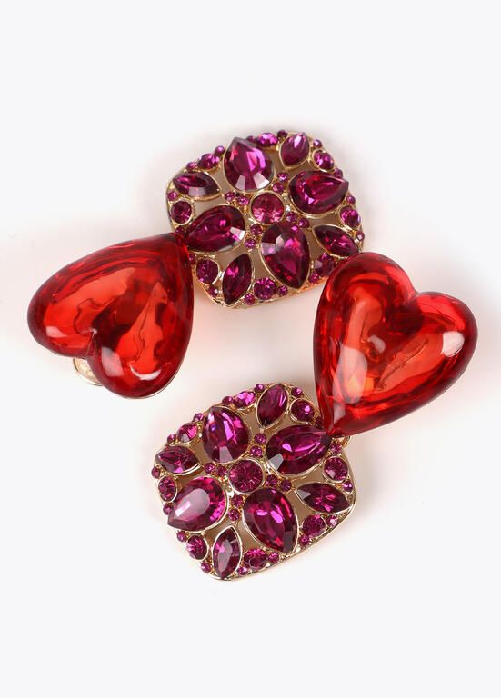 Pendientes joya con diseño de corazón en rojo vibrante. Decorados con incrustaciones bicolor en tonos rosas y rojos. Cierre de tuerca para mayor seguridad. Una pieza única y sofisticada que añade un toque de romanticismo a cualquier atuendo. Ideal para ocasiones especiales.