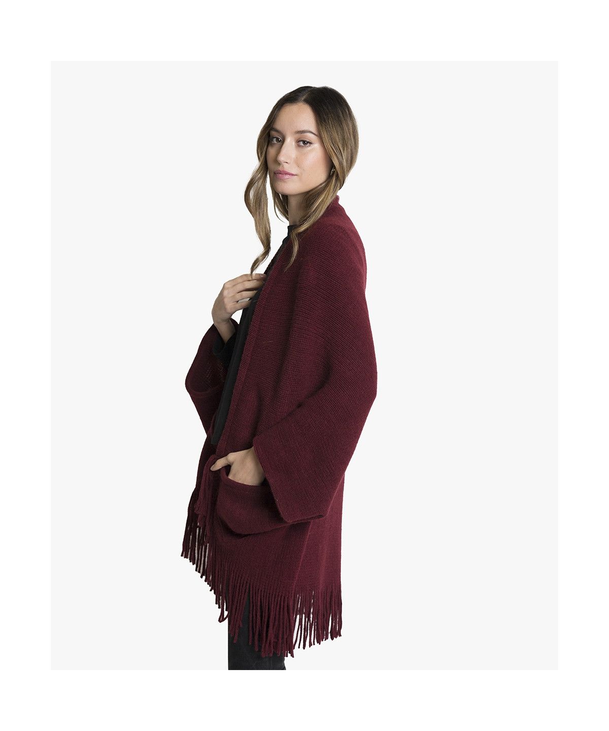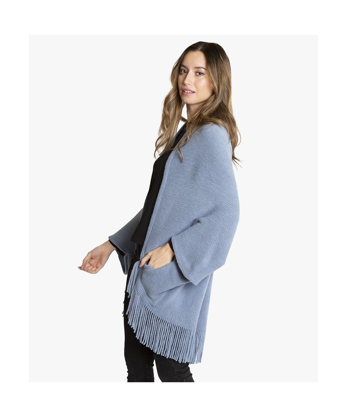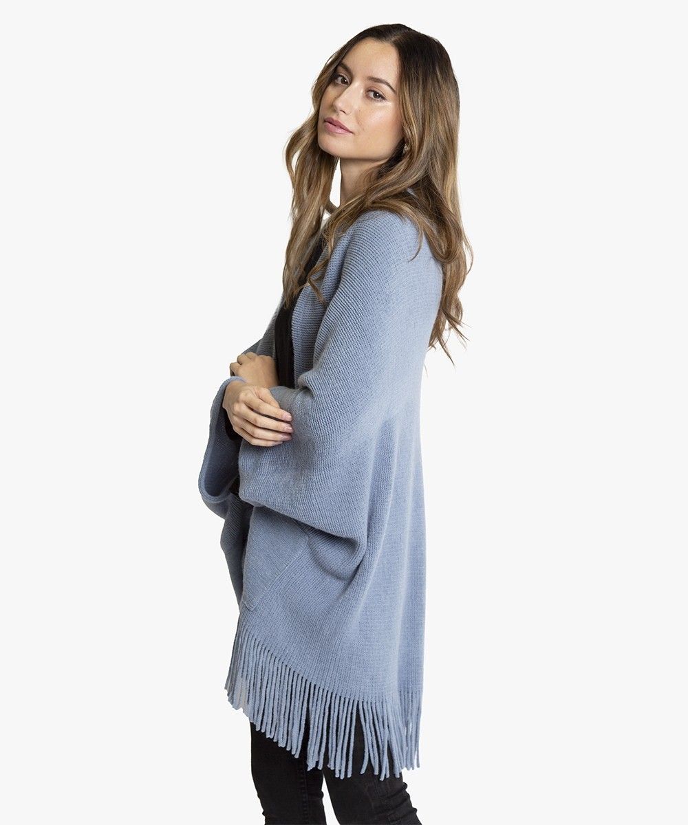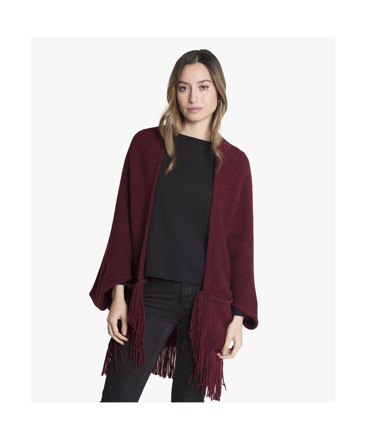 Chaleco tejido, tacto suave con dos bolsillos frontales y fleco en borde.