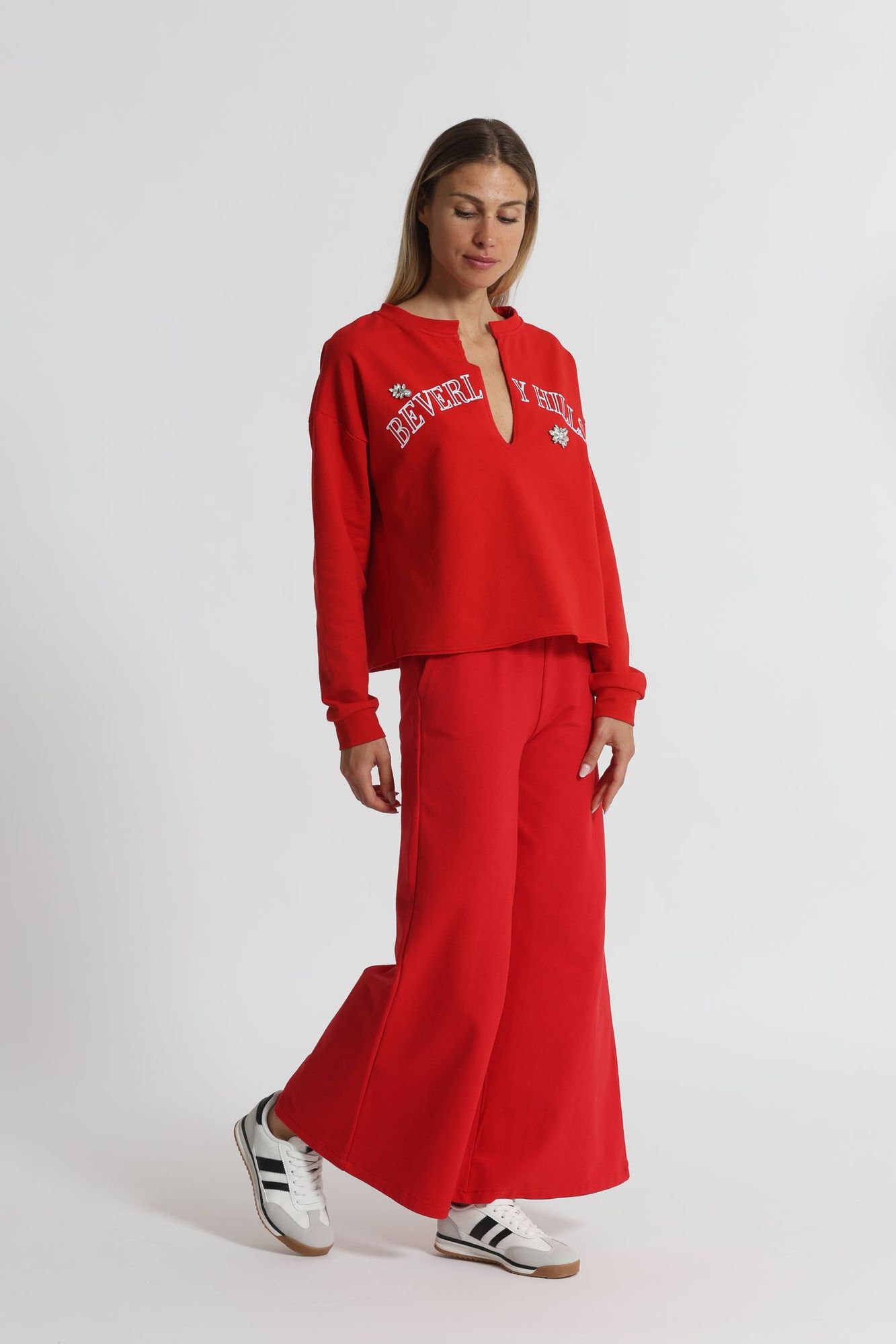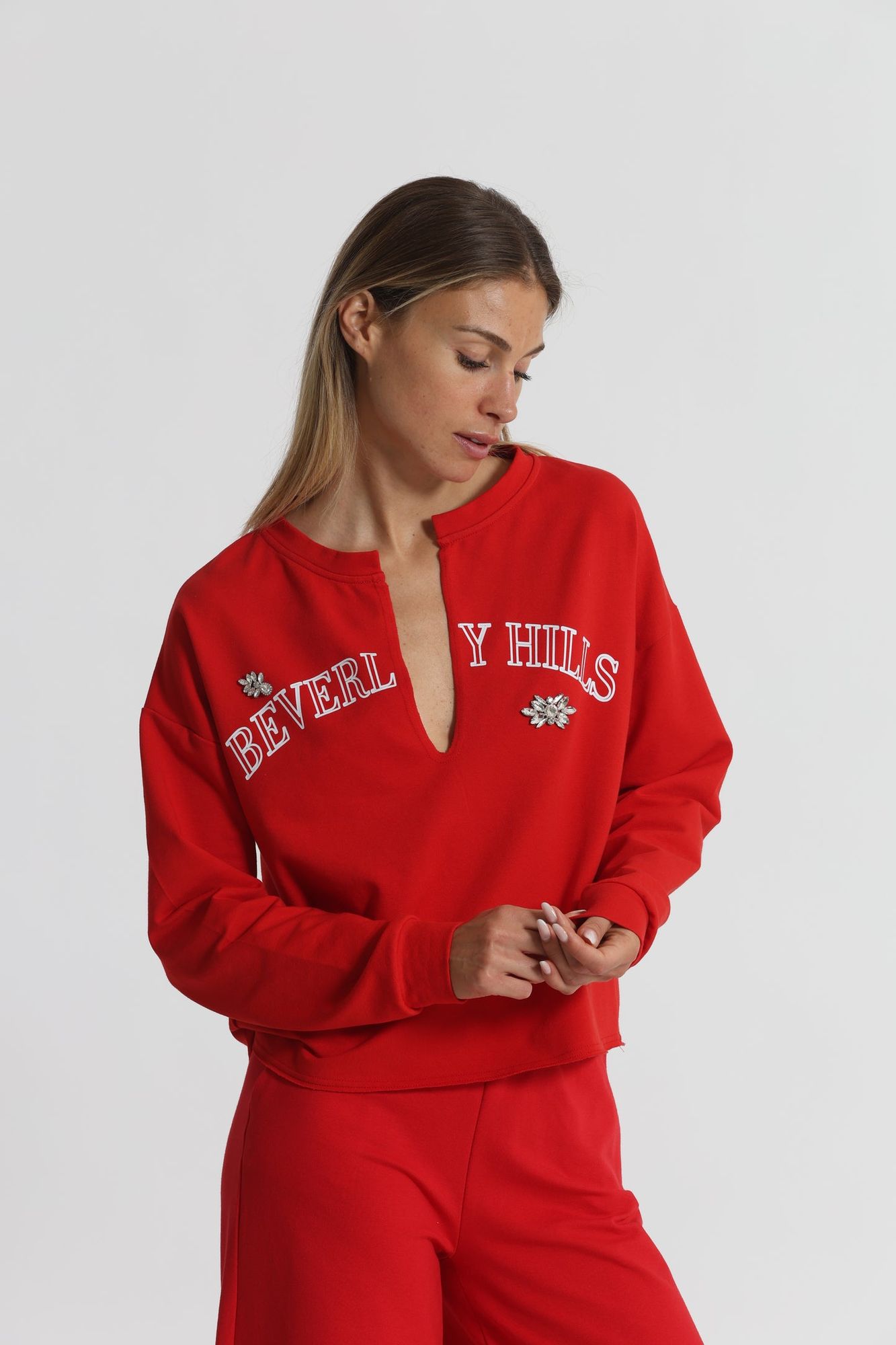 Sudadera «Beverly Hills» con cuello en V y detalles de pedrería