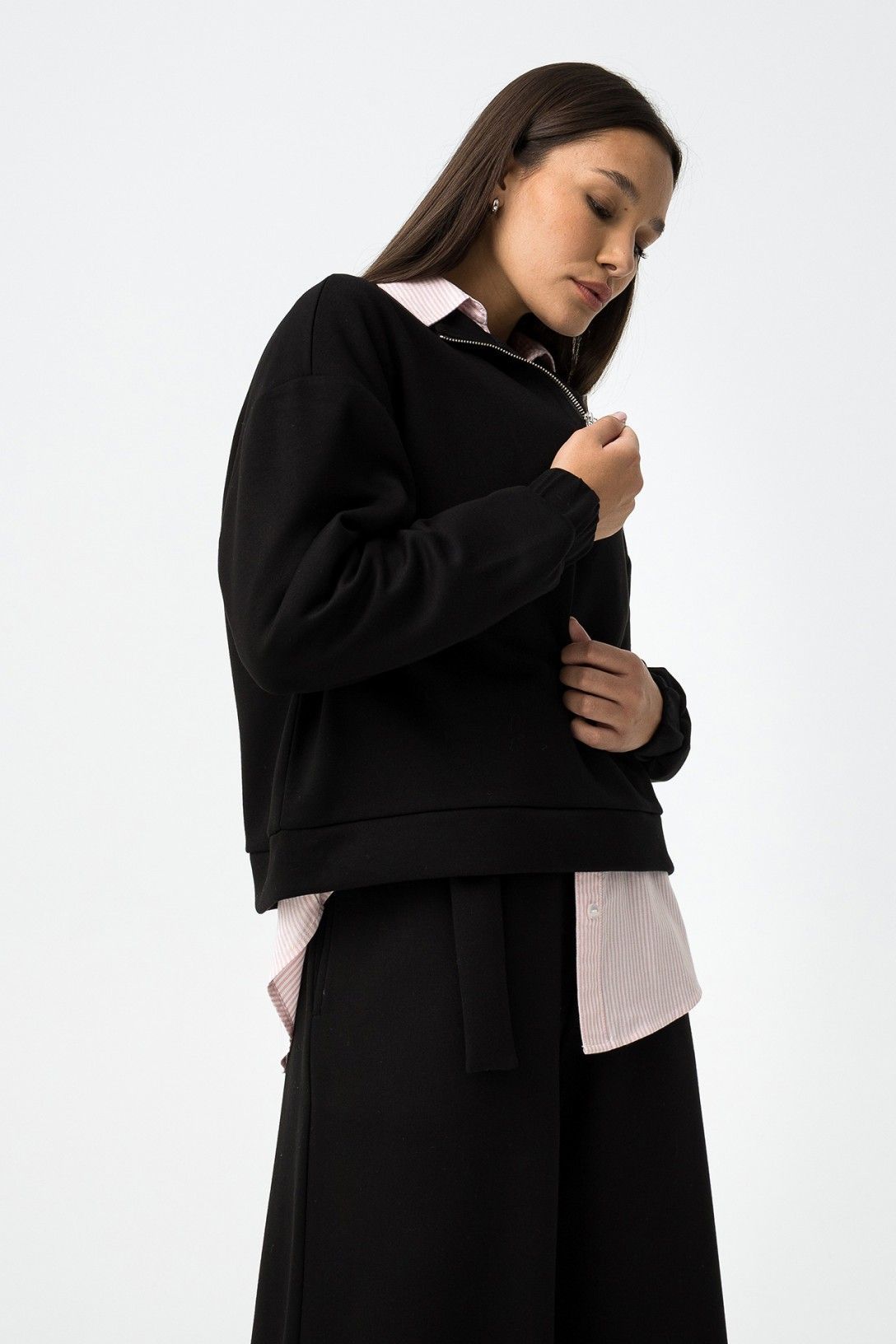 Sudadera de manga larga relaxed fit. Cuello alto con media cremallera. Puños fruncidos.