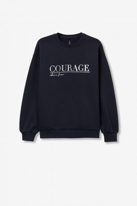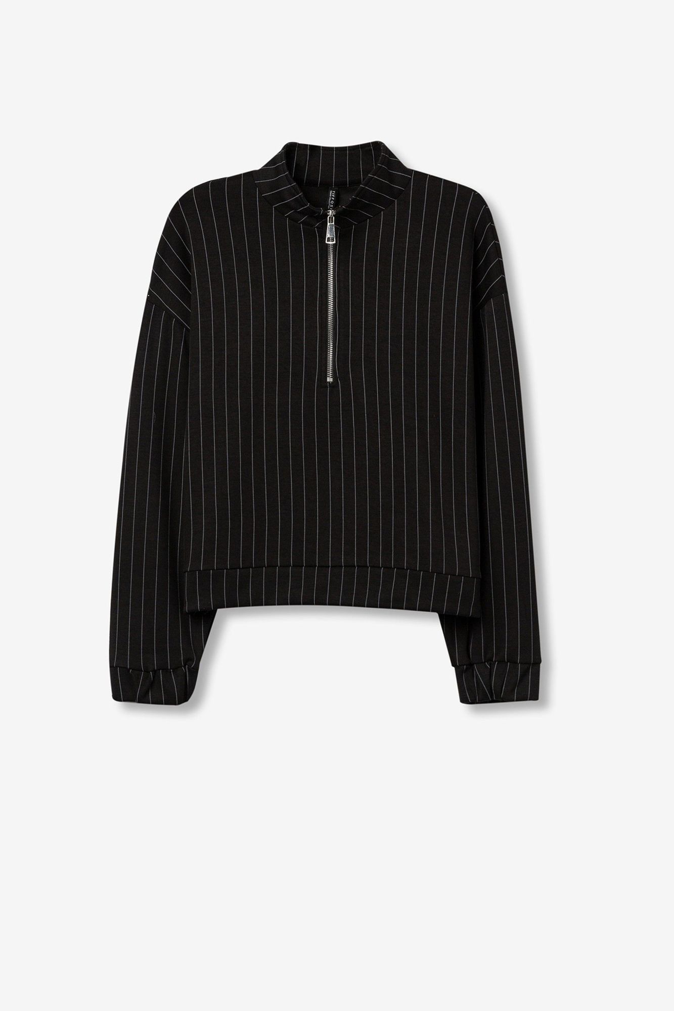 Sudadera de manga larga relaxed fit. Cuello alto con media cremallera. Puños fruncidos.