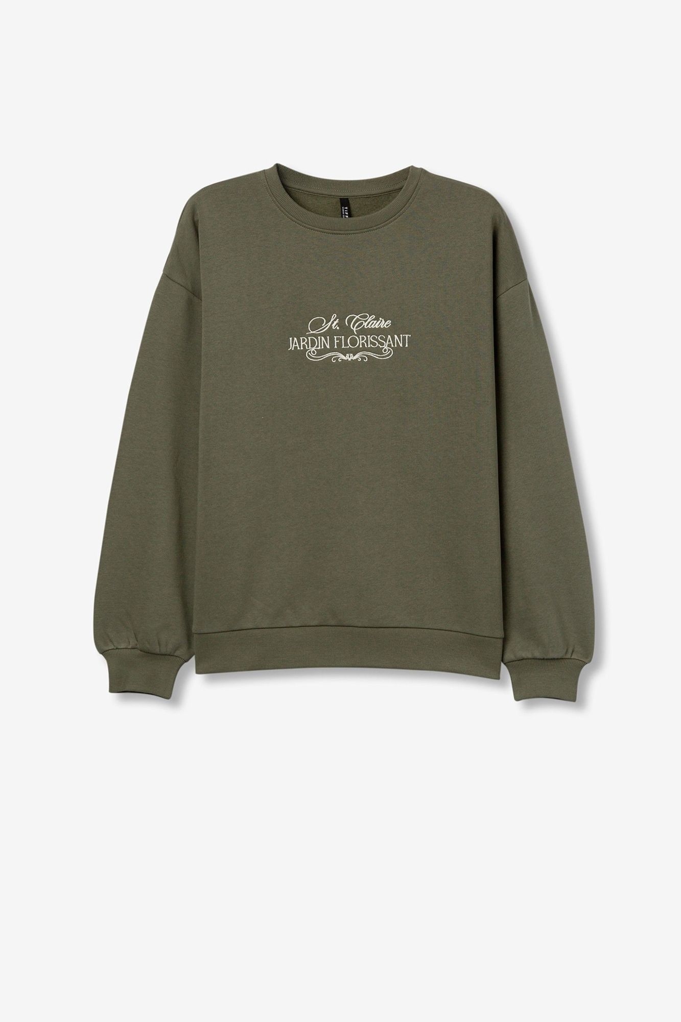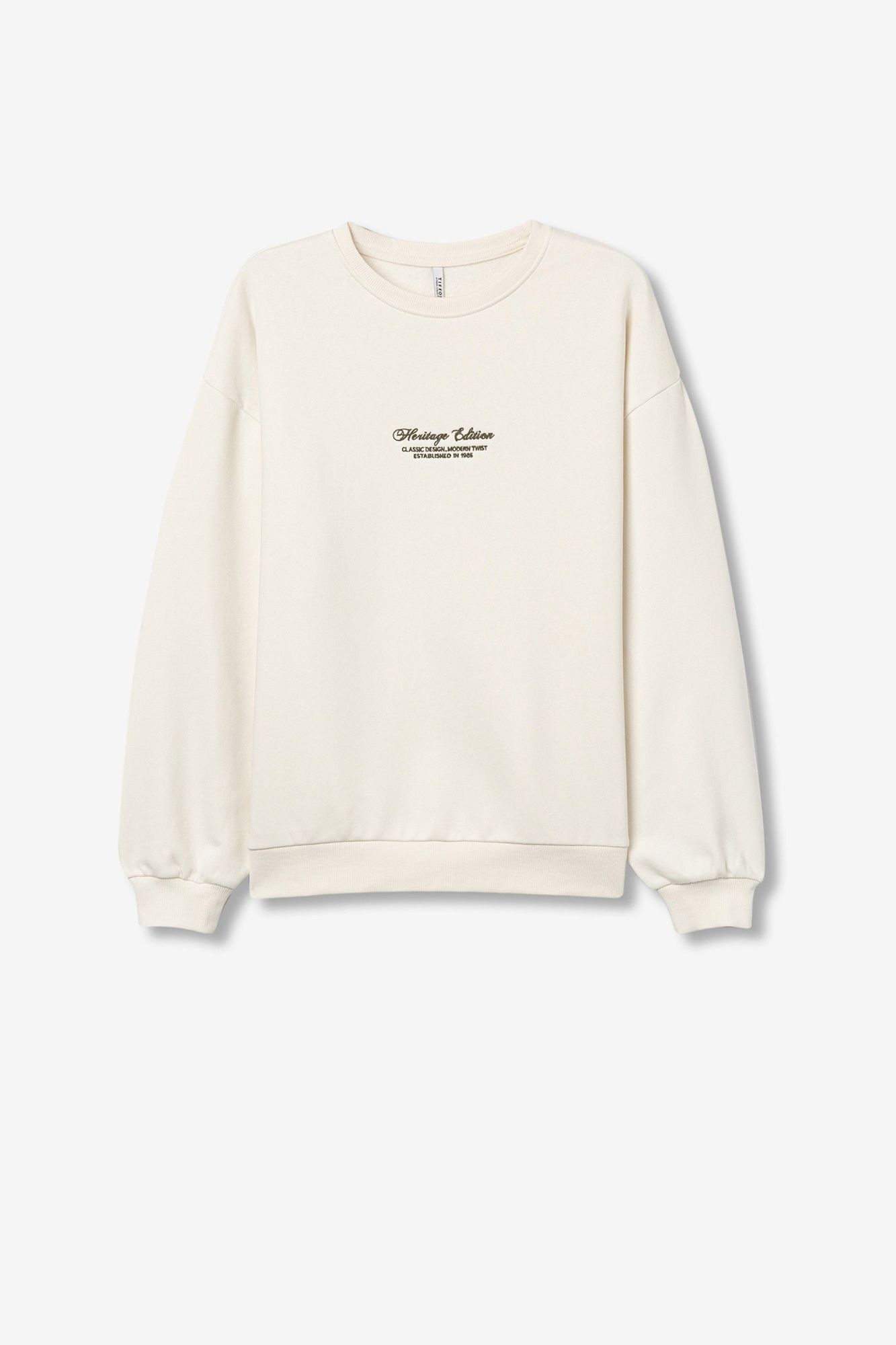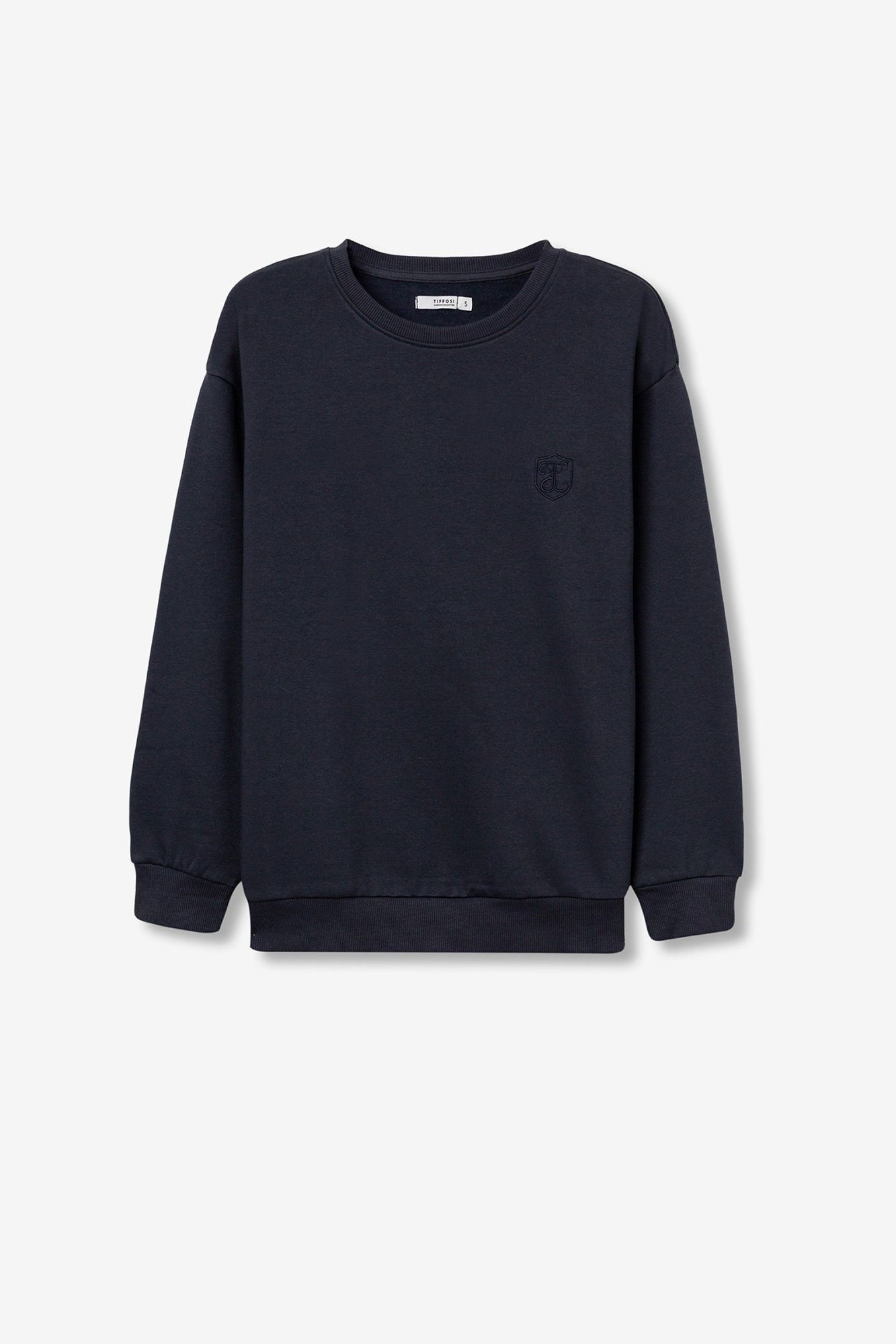 Sweatshirt regular fit de manga larga en tejido liso. Cuello redondo, puños y bajo con acabado en rib. Bordado frontal en relieve.