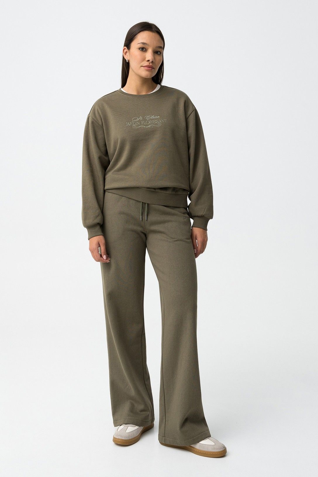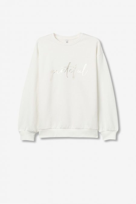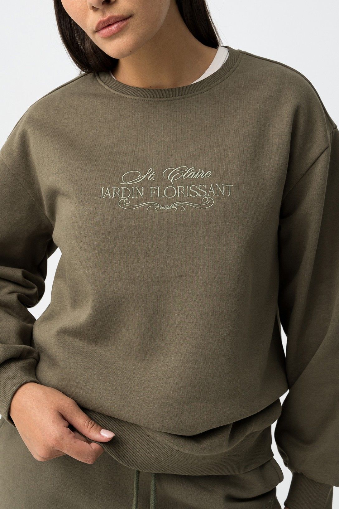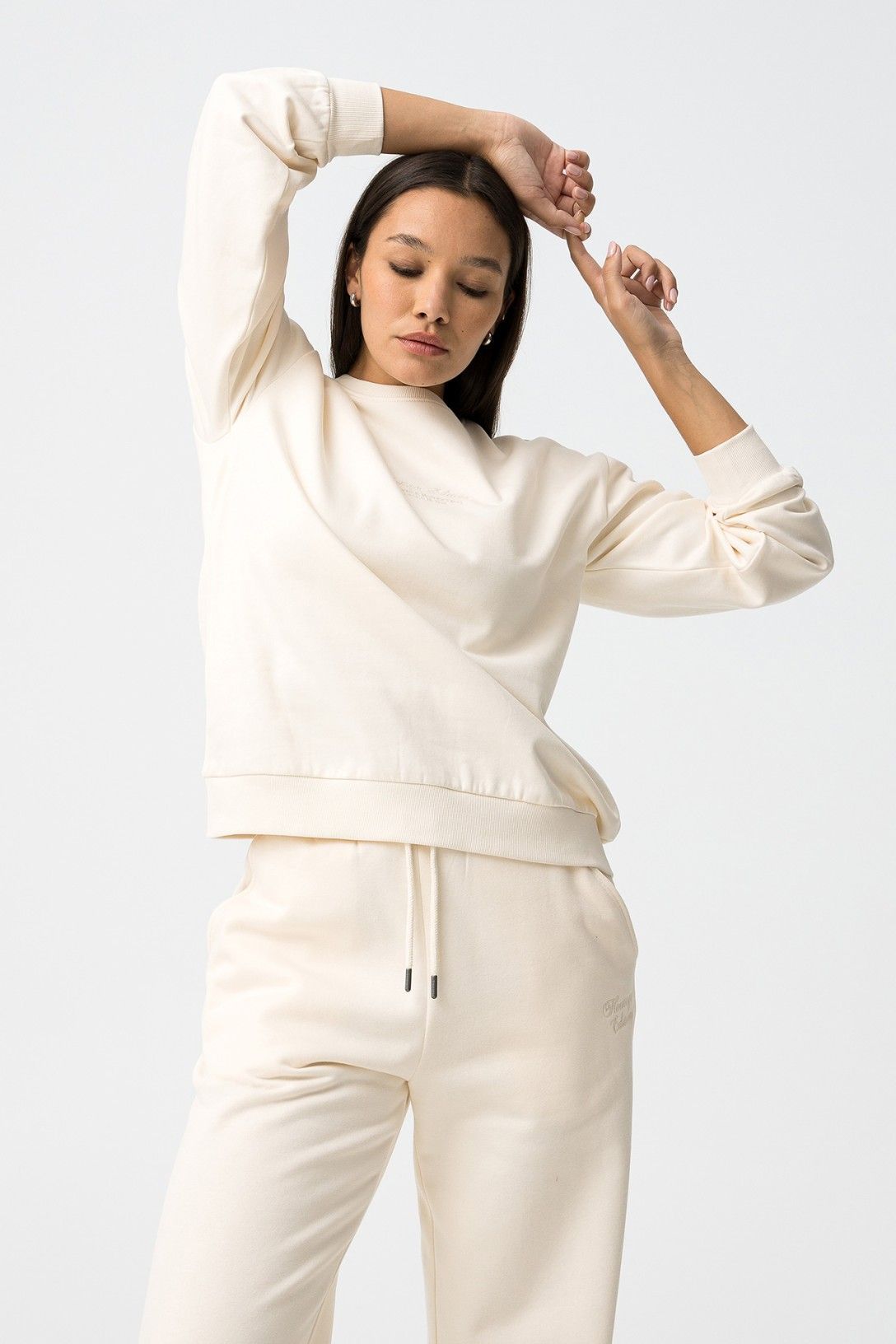 Sweatshirt regular fit de manga larga en tejido liso. Cuello redondo, puños y bajo con acabado en rib. Bordado frontal en relieve.