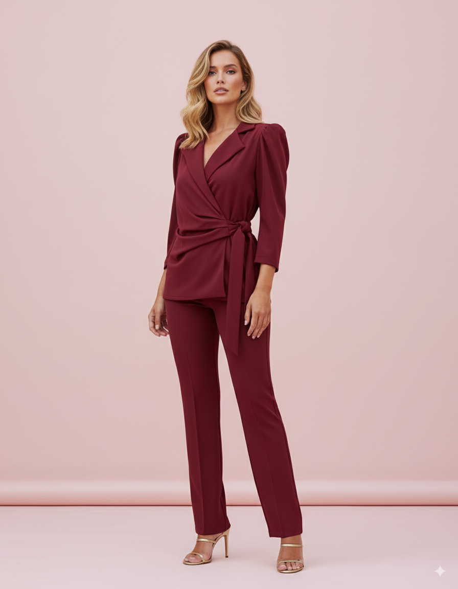 CONJUNTO DE PANTALON Y CASACA CON PLUMAS