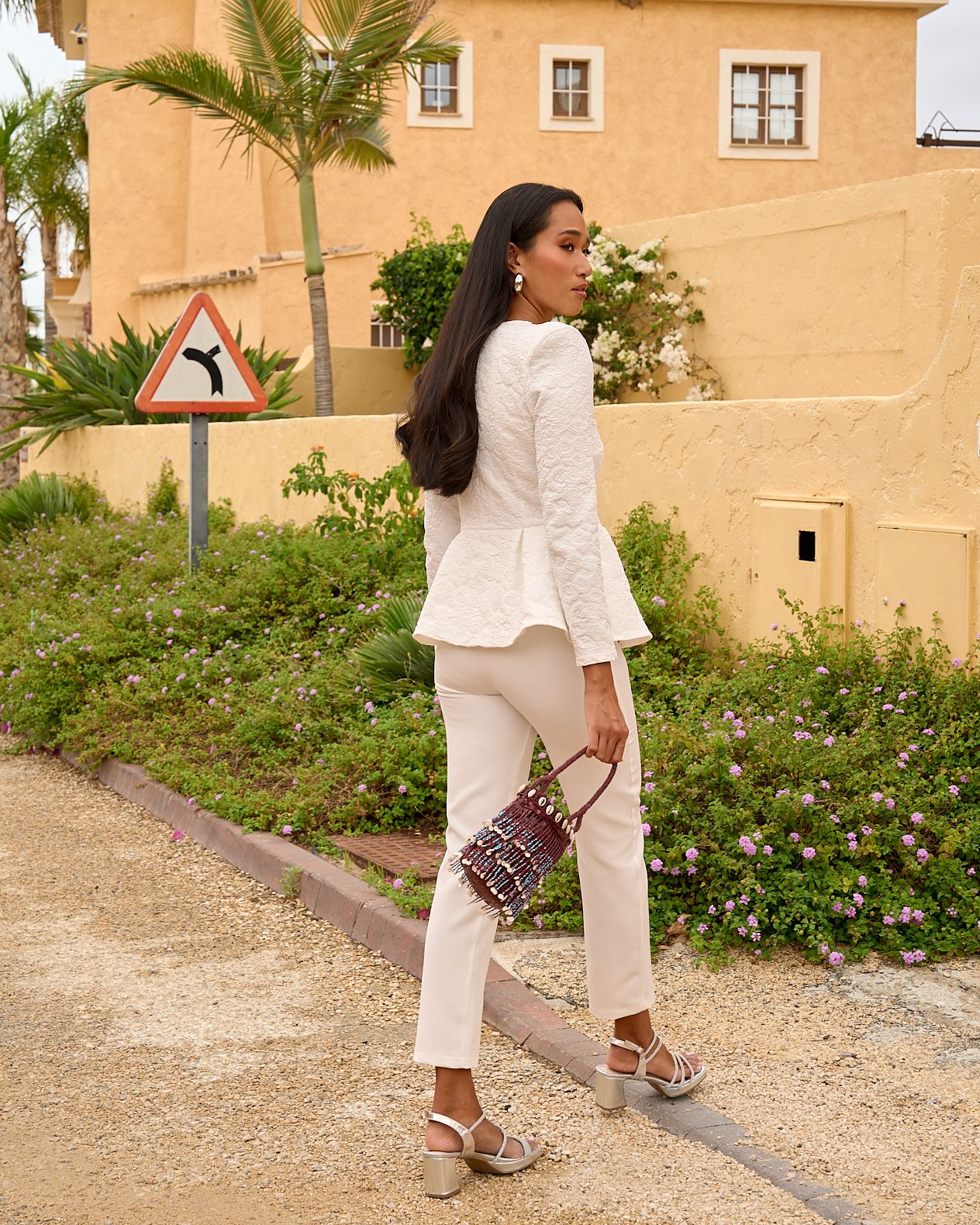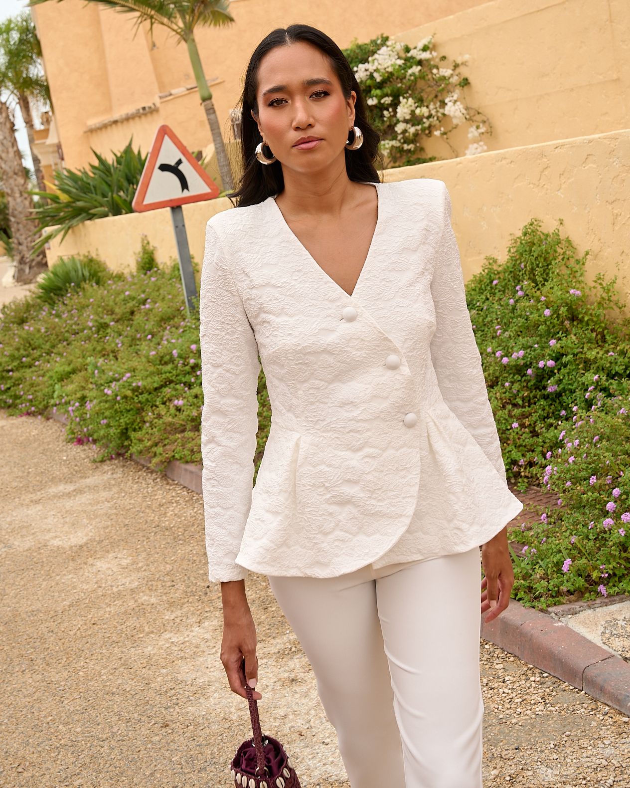 Conjunto de Chaqueta de Flores con Lentejuela y Pantalón